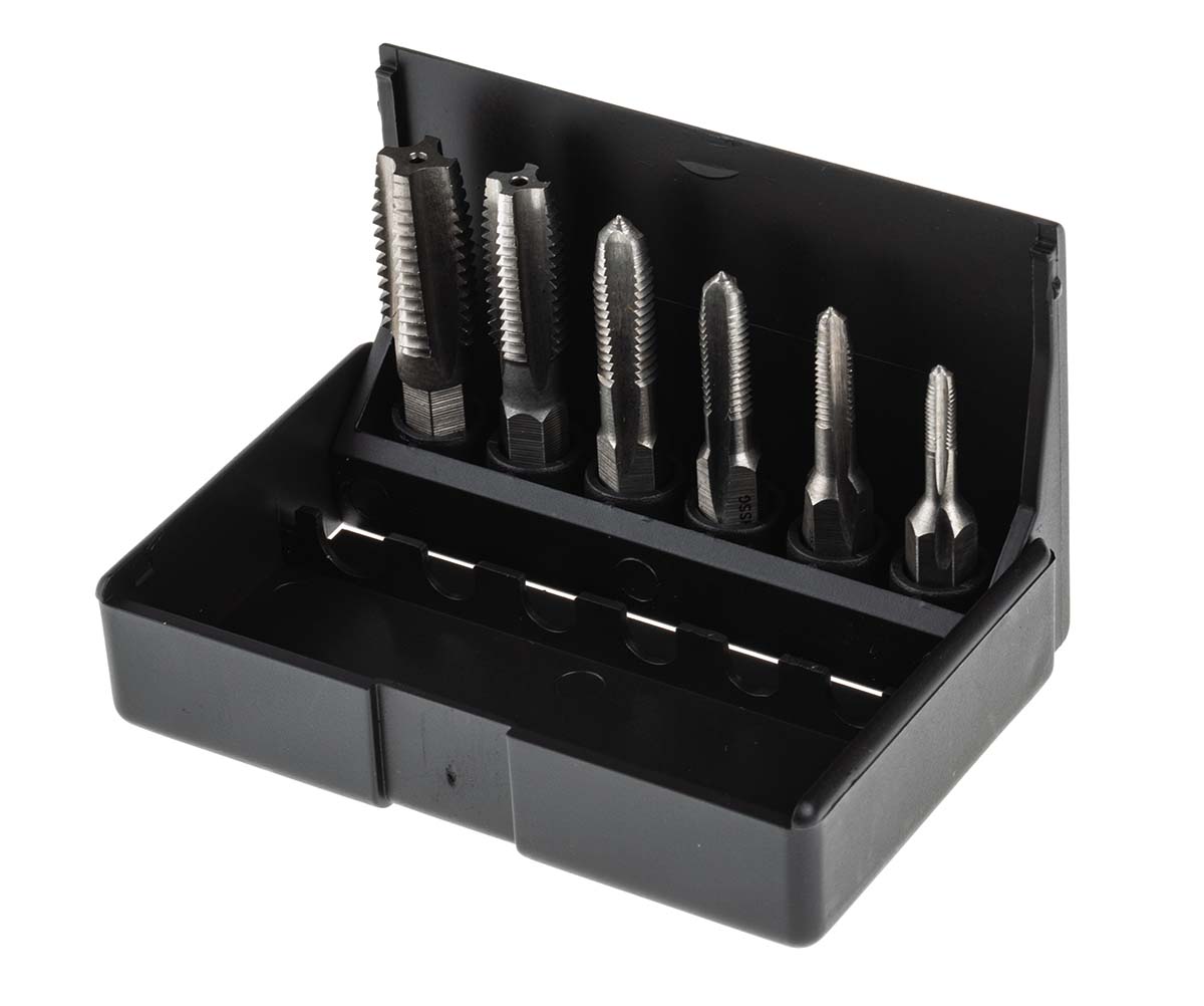 This is 6 Piece M10 HSS 1/4 in Hexagon Drive Tap Set M3; M4; M5; M6; M8; M10 manufactured by RS Pro. The manufacturer part number is 828-117. This is a type of threading tap set, a set with user-desired tools. It has a typical thread size of m10. The product is made from highly stable and reliable hss. It comes in hexagon drive tap configuration. The product consists of 6 pieces.