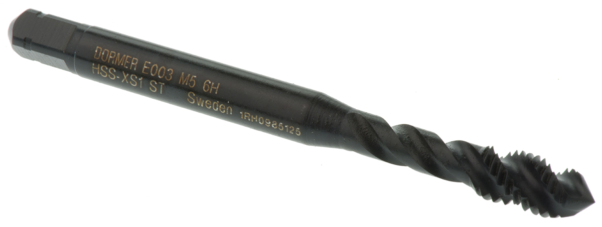 This is HSS-XS1 M5 Spiral Flute Thread Tap 58 mm Length manufactured by Dormer. The manufacturer part number is E003M5. Moreover, the product is 0.8mm. It has a typical thread size of m5. It has a machine tap . The threaded is a metric standard. The product is made from highly stable and reliable hss-xs1. This is a type of threading tap, a set with user-desired tools. In addition, its shank diameter is about 5 mm . It has an overall length of 58 mm. Its thread direction is to the right hand . It comes in spiral flute configuration. The product consists of 1 pieces.