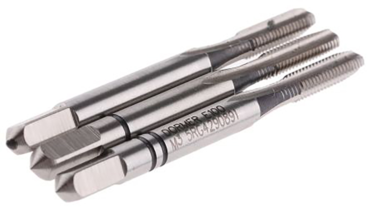 This is HSS M5 Straight Flute Thread Tap 50 mm Length manufactured by Dormer. The manufacturer part number is E100 5N8. Moreover, the product is 0.8mm. It has a typical thread size of m5. It has a hand tap . The threaded is a metric standard. The product is made from highly stable and reliable hss. This is a type of threading tap set, a set with user-desired tools. In addition, its shank diameter is about 6 mm . It has an overall length of 50 mm. Its thread direction is to the right hand . It comes in straight flute configuration. The product consists of 3 pieces.
