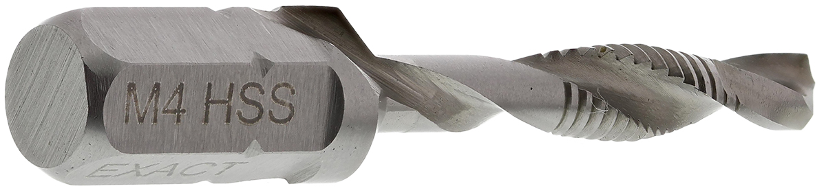 This is HSS M4 Combination Thread Tap 39 mm Length manufactured by EXACT. The manufacturer part number is 05902. Moreover, the product is 0.7mm. It has a typical thread size of m4. The threaded is a metric standard. The product is made from highly stable and reliable hss. This is a type of threading tap, a set with user-desired tools. In addition, its shank diameter is about 39 mm . It has an overall length of 39 mm. Its thread direction is to the right hand . It comes in combination configuration. The product consists of 1 pieces.