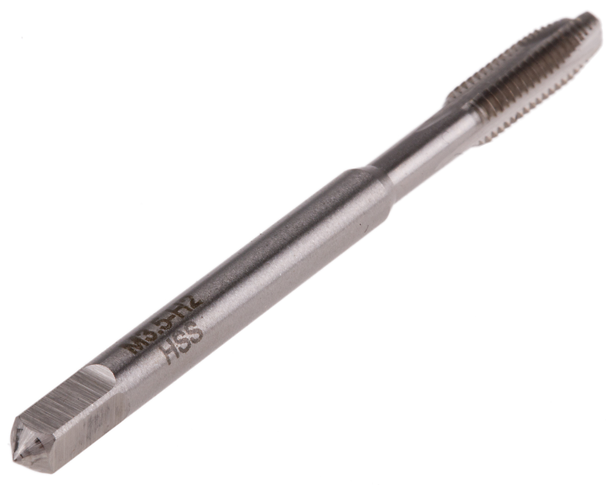This is HSS M3.5 Spiral Point Thread Tap 50 mm Length manufactured by RS Pro. The manufacturer part number is 455-891. It has a/an iso shank standard . It has a typical thread size of m3.5. It has a manual or machine tap . It has a plain type shank . The threaded is a metric standard. The product is made from highly stable and reliable hss. It has an overall length of 50mm. This is a type of threading tap, a set with user-desired tools. In addition, its shank diameter is about 3.55mm . Moreover, the product is 0.6mm. Its thread direction is to the right hand . It comes in spiral point configuration. The product consists of 1 pieces.