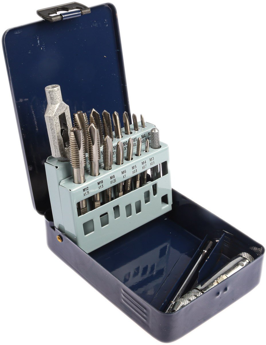This is 16 Piece M12 HSS Short Machine Tap Set manufactured by EVENTUS. The manufacturer part number is 20331. This is a type of threading tap set, a set with user-desired tools. It has a typical thread size of m12. The product is made from highly stable and reliable hss. It comes in short machine configuration. The product consists of 16 pieces.