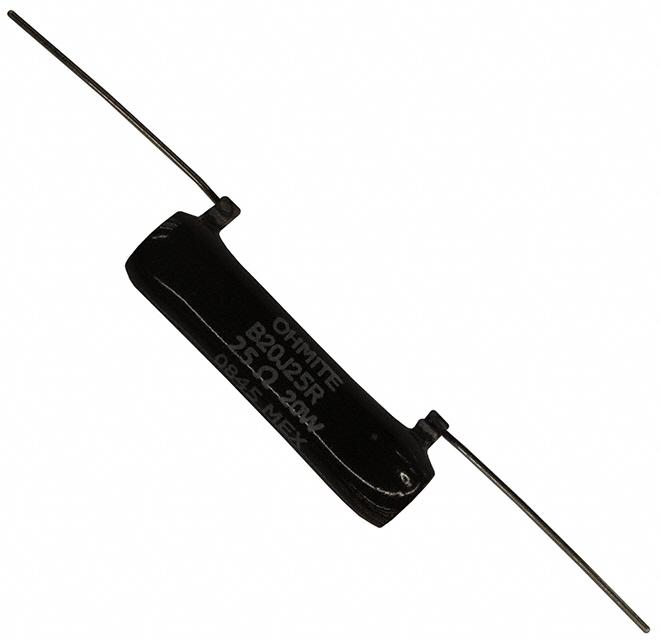 This is manufactured by Ohmite. The manufacturer part number is B20J25R. It is assigned with possible HTSUS value of 8533.21.0080. The product is rohs non-compliant. It exhibits an excellent temperature coefficient of ±260ppm/°c. The product features power and watts of 20w. Moreover, the product comes in axial. It features ±5% of tolerance value. It is composed of wirewound. It is shipped in bulk package . The product's diameters include 0.437" dia x 2.000" l (11.11mm x 50.80mm). It has a long 10 weeks standard lead time. Its typical moisture sensitivity level is not applicable. The splendid features of the product include flame retardant coating, safety. The product brown devil® 200, is a highly preferred choice for users. It carries 25 ohms resistance. Additionally, 2 is the Number of Termination. The product is designated with the ear99 code number.