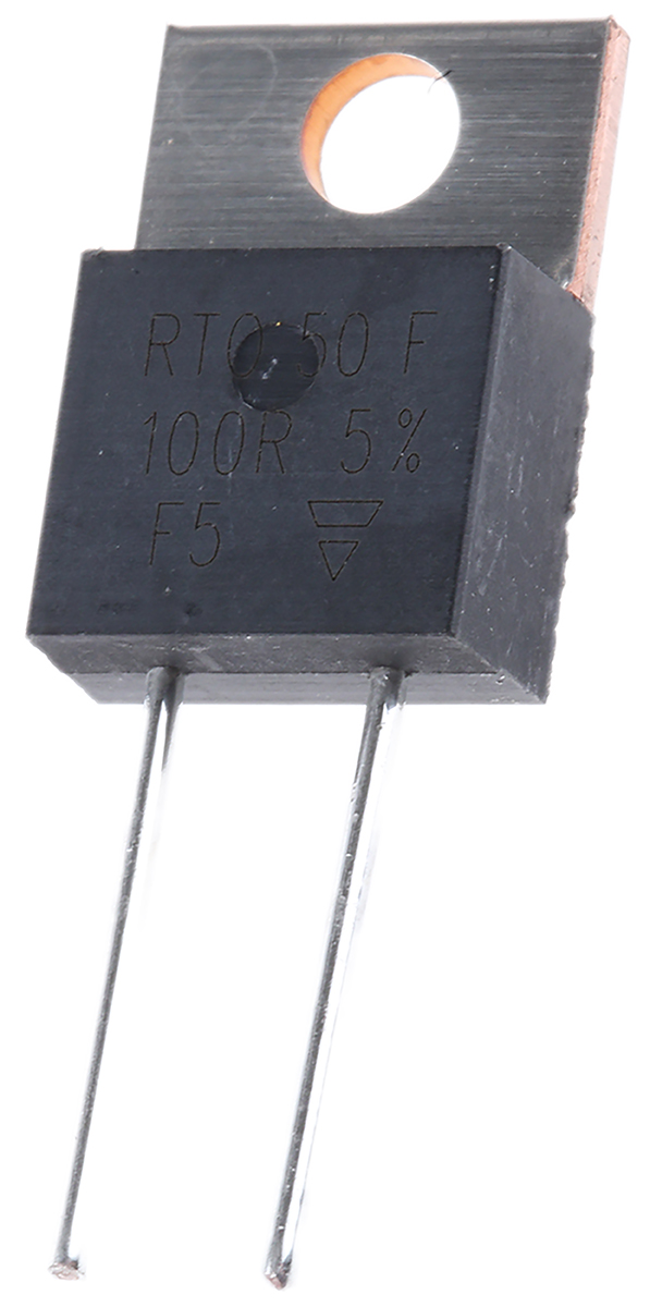 This is RTO 50 Series TO-220 Radial Fixed Resistor 100Ω ±5% 50W ±150ppm/°C manufactured by Vishay. The manufacturer part number is RTO050F100R0JTE1. The product rto 50, is a highly preferred choice for users. It carries 100ω resistance. It exhibits an excellent temperature coefficient of ±150ppm/°c. This product use thick film technology. Whereas, the minimum operating temperature of the product is -55°c. The lead features 5.08mm pitch. It has a maximum operating temperature of +155°c. It features ±5% of tolerance value. Feature 50w of power rating. Concerning its package and casing, it is to-220.
