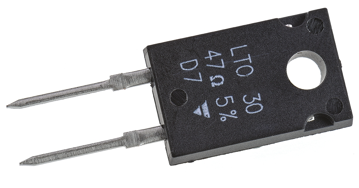 This is LTO30 Series TO-220 Radial Fixed Resistor 47Ω ±5% 30W ±150ppm/°C manufactured by Vishay. The manufacturer part number is LTO030F47R00JTE3. The product lto30, is a highly preferred choice for users. It carries 47ω resistance. It exhibits an excellent temperature coefficient of ±150ppm/°c. This product use thick film technology. Whereas, the minimum operating temperature of the product is -55°c. The lead features 5.08mm pitch. It has a maximum operating temperature of +150°c. It features ±5% of tolerance value. Feature 30w of power rating. Concerning its package and casing, it is to-220.