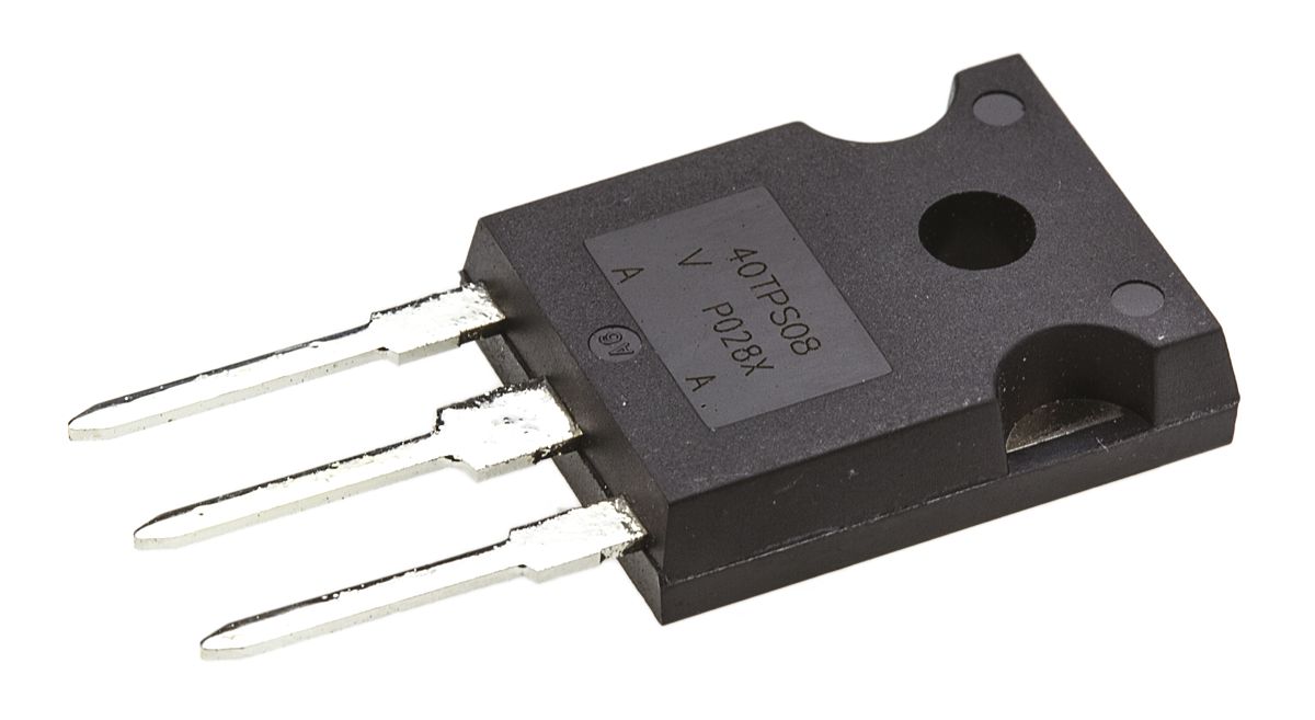 This is Thyristor 800V 35A 150mA 3-Pin TO-247AC manufactured by Vishay. The manufacturer part number is VS-40TPS08-M3. Moreover, it has a repetitive peak forward blocking voltage about 800v . It has about 800v repetitive reverse voltage . It has a peak on-state voltage about 1.85v . The given dimensions of the product include 15.87 x 5.31 x 20.7mm. The product is available in through hole configuration. It has about 600a surge current rating . Moreover, it has about 35a rated average on-state current . Its repetitive peak off-state current is approximately 0.5ma . The package is a sort of to-247ac. Whereas, the minimum operating temperature of the product is -40 °c. The product has a maximum 150ma holding current . In addition, the product has a maximum 150ma gate trigger current . In addition, the product has a/an scr type thyristor . It has a maximum operating temperature of +125 °c. It contains 3 pins. Moreover, it has a maximum 2.5v gate trigger voltage .