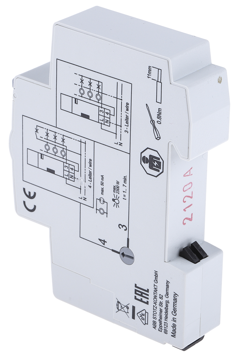 This is Staircase Timer Light Switch manufactured by ABB. The manufacturer part number is 2CDE110000R0501. The product comes in 59mm depth. It measures in minutes units . In addition, the height is 88mm.
