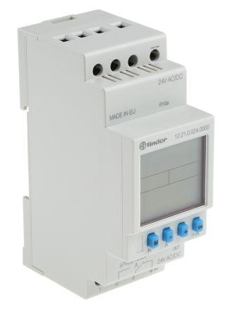 This is 1 Channel Digital DIN Rail Switch Measures Minutes 24 V ac/dc manufactured by Finder. The manufacturer part number is 12.21.0.024.0000. It measures in minutes units . Its segment length is approximately 1 min . In addition, the height is 90mm. The product comes in 63mm depth. Its battery life is about 6yr . It is supplied with 1 channels. Features 24 v ac/dc supply voltage. It includes 30 memory spaces . The contact is equipped with spdt-1no/1nc configuration. It comes in digital configuration.