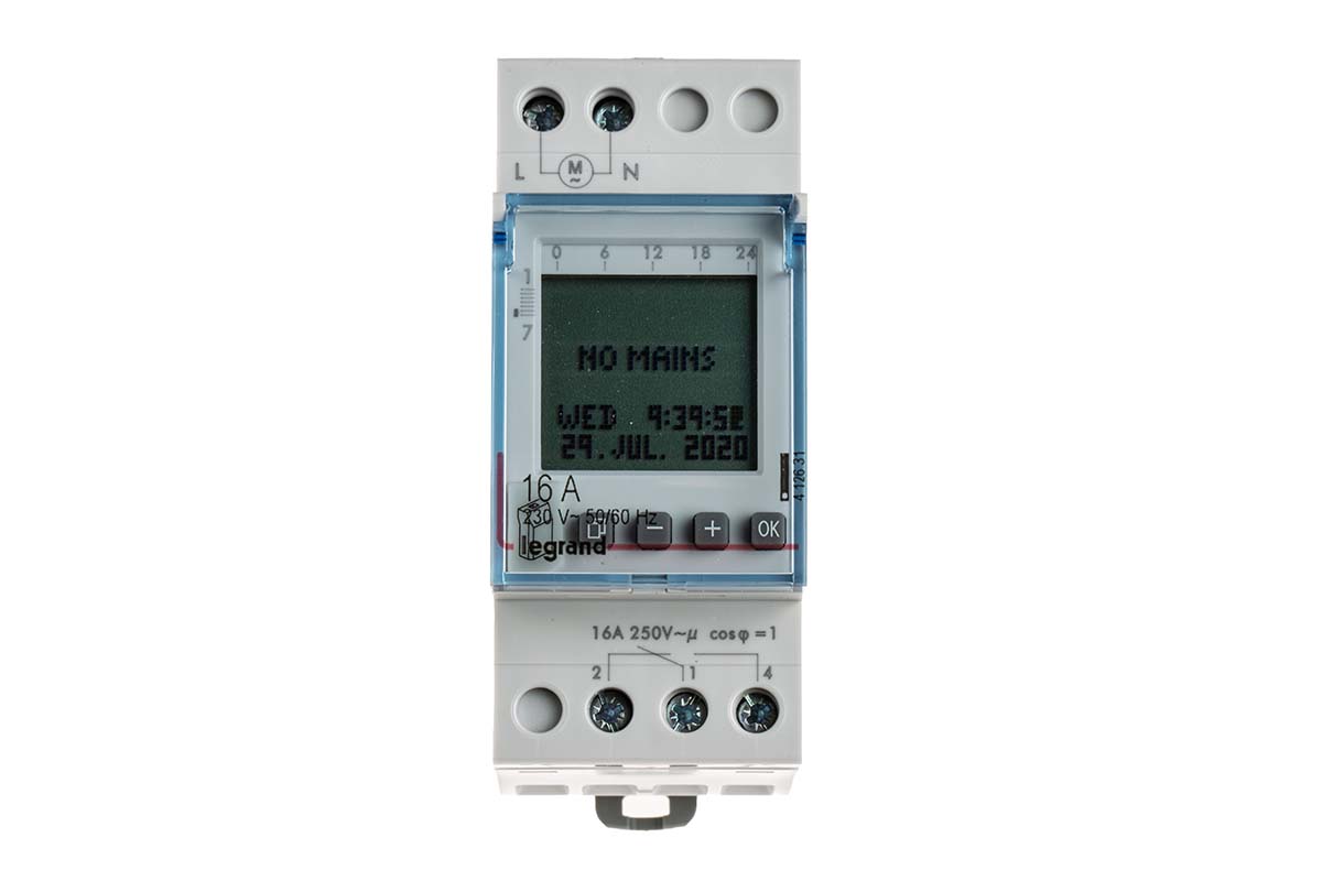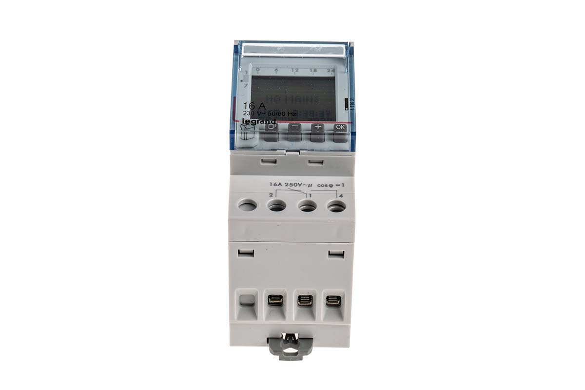 This is 2 Channel Digital DIN Rail Switch Measures Hours Minutes Seconds 230 V ac manufactured by Legrand. The manufacturer part number is 4 126 31. It measures in hours, minutes, seconds units . In addition, the height is 83mm. The product comes in 66mm depth. Its battery life is about 5yr . It is supplied with 2 channels. Features 230 v ac supply voltage. It comes in digital configuration.