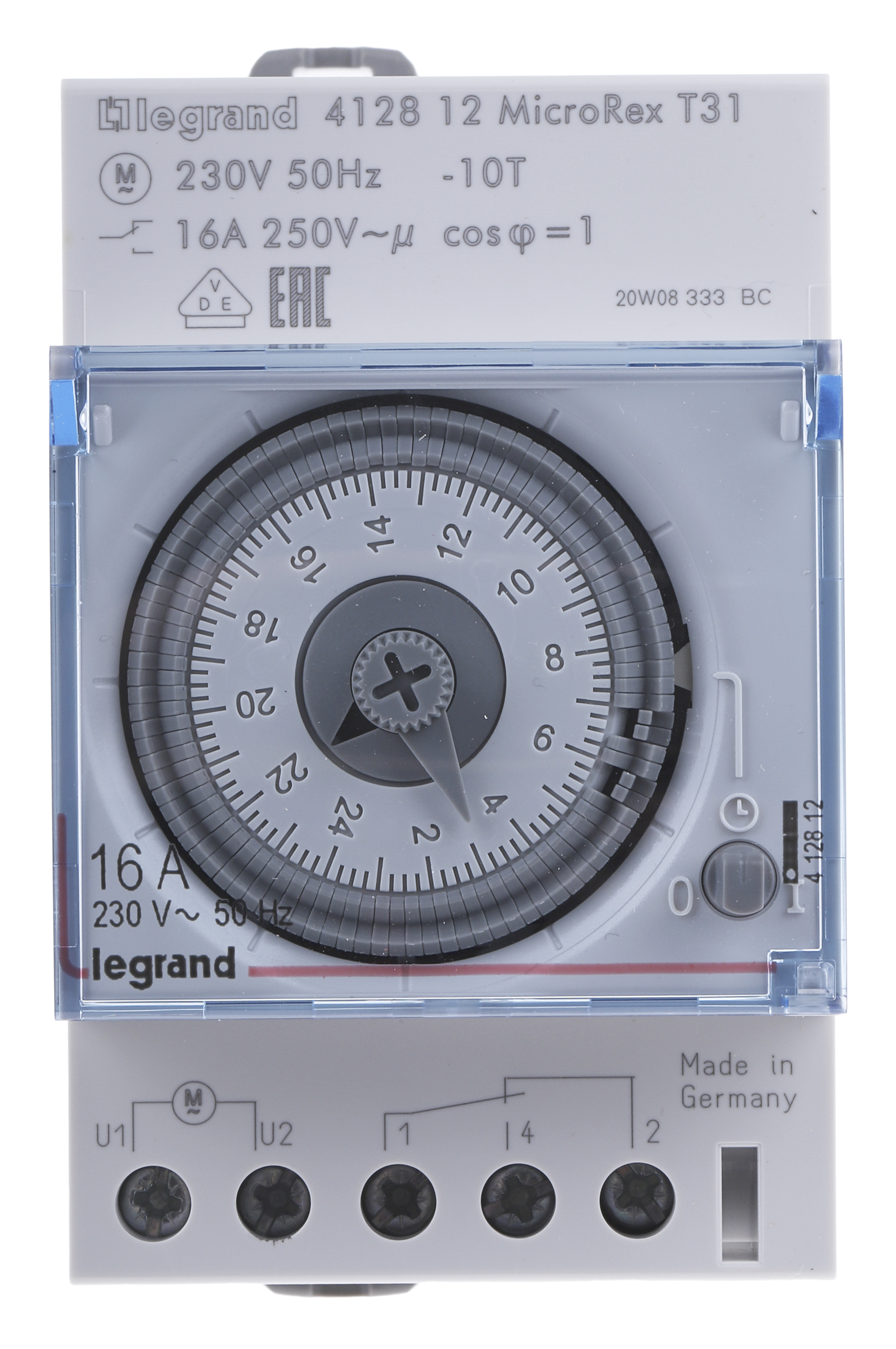 This is 3 Channel Analogue DIN Rail Switch Measures Hours Minutes Seconds 230 V ac manufactured by Legrand. The manufacturer part number is 4 128 12. It measures in hours, minutes, seconds units . Its segment length is approximately 15 min . In addition, the height is 83mm. The product comes in 66mm depth. It is supplied with 3 channels. Features 230 v ac supply voltage. The contact is equipped with spdt configuration. It comes in analogue configuration.