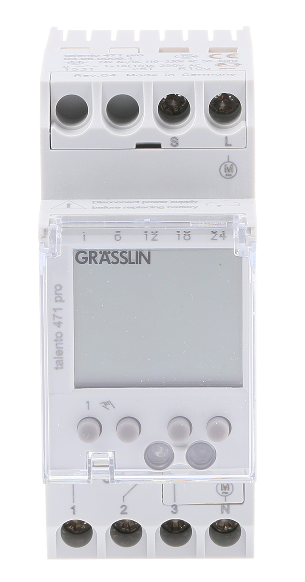 This is 1 Channel Digital DIN Rail Switch Measures Hours Minutes 110 → 230 V ac 24 V ac/dc manufactured by Grasslin. The manufacturer part number is 03.98.0001.1. Priced to Clear Options - yes. It measures in hours, minutes units . Its segment length is approximately 1 s . In addition, the height is 85mm. The product comes in 60mm depth. Its battery life is about 10yr . It is supplied with 1 channels. Features 24 v ac/dc, 110 → 230 v ac supply voltage. It includes 100 memory spaces . The contact is equipped with spdt configuration. It comes in digital configuration.