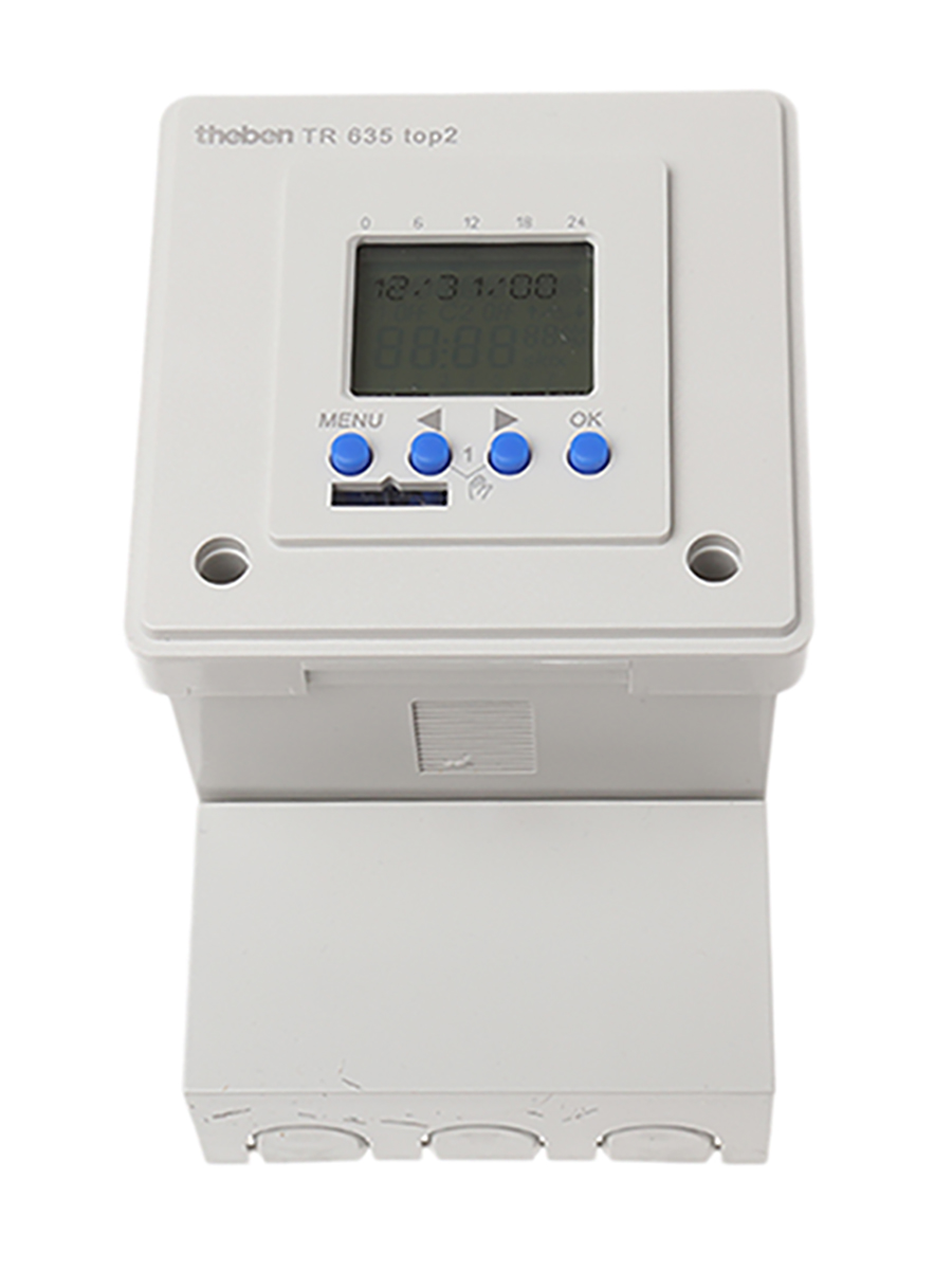 This is Digital Time Switch 230 V ac 1-Channel manufactured by Theben. The manufacturer part number is TR635 top2. It measures in hours units . Its segment length is approximately 7 day . In addition, the height is 104mm. The product comes in 69mm depth. Its battery life is about 1000h . It is supplied with 1 channels. Features 230 v ac supply voltage. It includes 84 memory spaces . It comes in digital configuration. The terminal is a wire lead type.