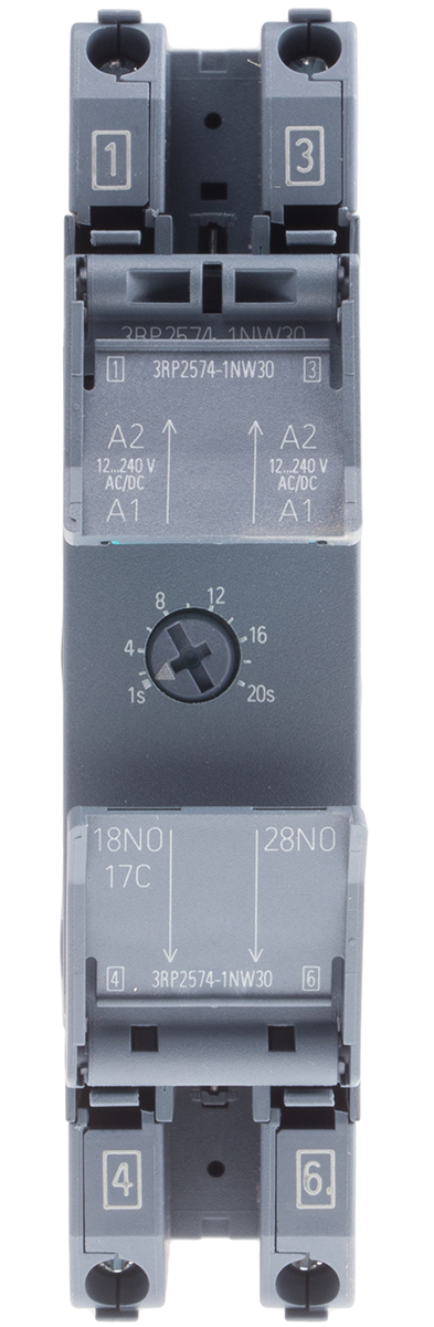 This is Star Delta Single Timer Relay Screw 1 → 20 s DPNO 2 Contacts DPST 12 → 240 V ac/dc manufactured by Siemens. The manufacturer part number is 3RP2574-1NW30. It has a maximum 240v ac/dc voltage . Furthermore, the product is 22.5mm wide. Features 12 → 240v ac/dc supply voltage. It also carries 3a maximum current. It has a standard 1 → 20s time range . Its mode of operation is star delta . It includes a single functions timer . It has a maximum operating temperature of +60°c. The terminal is a screw type. Additionally, its time delay is about 250ms . Whereas, the minimum operating temperature of the product is -25°c. Its time increment is in seconds . It is created with a/an dpst switch configuration . The contact is equipped with dpst configuration. Its accurate length is 90mm. It has a minimum 12v ac/dc voltage . The product is available in din rail configuration. The product 3rp25, is a highly preferred choice for users. The product comes in 100mm depth. The product contains 2 contacts. The product is made from sturdy agsno2 materials.