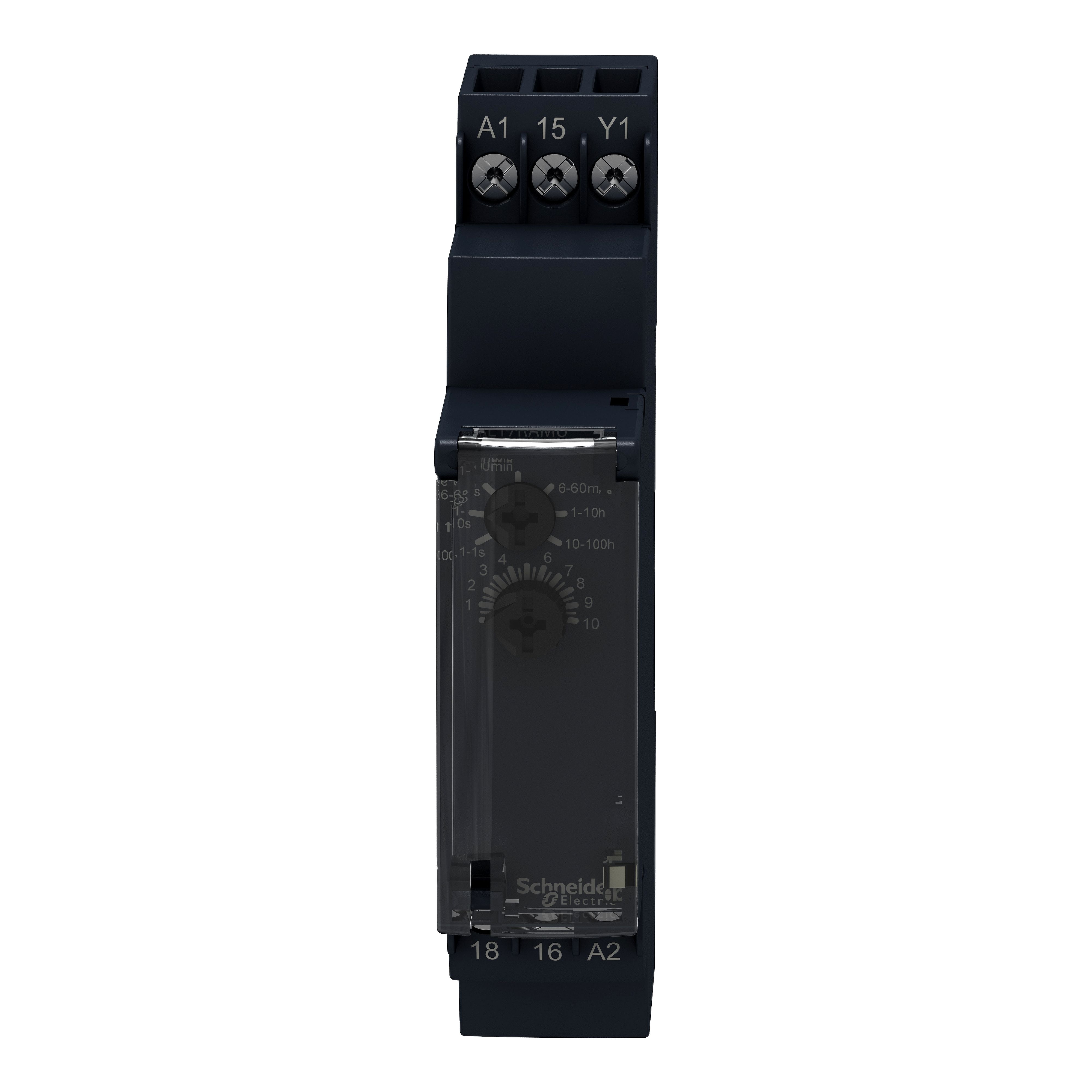 This is ON Pulse Multi Function Timer Relay Screw 0.1 s → 100 h SPDT 1 Contacts SPDT manufactured by Schneider Electric. The manufacturer part number is RE17RHMU. It has a maximum 24 v dc, 240v ac voltage . Furthermore, the product is 17.5mm wide. Features 24 v dc, 24 → 240v ac supply voltage. It also carries 8a maximum current. It has a standard 0.1 s → 100h time range . Its mode of operation is on pulse . It includes a multi function functions timer . It has a maximum operating temperature of +60°c. The terminal is a screw type. Additionally, its time delay is about <100ms . Whereas, the minimum operating temperature of the product is -20°c. Its time increment is in hours, minutes, seconds . It is created with a/an spdt switch configuration . The contact is equipped with spdt configuration. Its accurate length is 90mm. It has a minimum 24v ac voltage . Better World Verification Options - green premium. Is it a better world product? yes. The product is available in din rail configuration. The product harmony time, is a highly preferred choice for users. The product comes in 72mm depth. The product contains 1 contacts.