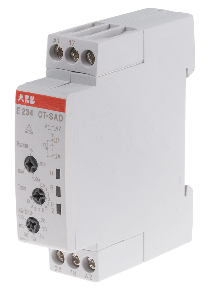 This is Star Delta Single Timer Relay 0.05 s → 10 min DPNO 2 Contacts SPDT manufactured by ABB. The manufacturer part number is 1SVR500210R0100 - CT-SAD.22. It has a maximum 250v voltage . Furthermore, the product is 22.5mm wide. Features 24 → 240 v ac, 24 → 48v dc supply voltage. It also carries 6a maximum current. It has a standard 0.05 s → 10min time range . Its mode of operation is star delta . It includes a single functions timer . It has a maximum operating temperature of +60°c. The terminal is a screw type. Its time increment is in minutes, seconds . It includes a/an external power supply . It is created with a/an spdt switch configuration . The contact is equipped with dpst configuration. Its accurate length is 78mm. It has a minimum 12v voltage . The product is available in din rail configuration. The product 1svr, is a highly preferred choice for users. The product comes in 100mm depth. It has a minimum 0.1a current . Whereas, the minimum operating temperature of the product is -20°c. The product contains 2 contacts. The product is made from sturdy cadmium materials.
