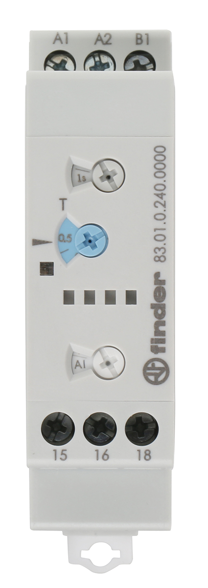 This is ON Delay Multi Function Timer Relay 0.05-10 s 0.05-10 d 0.05-10 min 0.05-10 h SPDT 1 Contacts SPDT manufactured by Finder. The manufacturer part number is 83.01.0.240.0000. It has a maximum 265v ac/dc voltage . Furthermore, the product is 22.5mm wide. Features 24 → 240v ac/dc supply voltage. It also carries 16a maximum current. It has a standard 0.05-10 s, 0.05-10 d, 0.05-10 min, 0.05-10h time range . Its mode of operation is on delay . It includes a multi function functions timer . It has a maximum operating temperature of +60°c. The terminal is a screw type. Additionally, its time delay is about 200ms . Its time increment is in days, hours, minutes, seconds . It includes a/an external power supply . It is created with a/an spdt switch configuration . The contact is equipped with spdt configuration. Its accurate length is 86.2mm. It has a minimum 24v ac/dc voltage . The product is available in din rail configuration. The product 83 series, is a highly preferred choice for users. The product comes in 100.3mm depth. It has a minimum 16a current . Whereas, the minimum operating temperature of the product is -20°c. The product contains 1 contacts. The product is made from sturdy silver nickel materials.