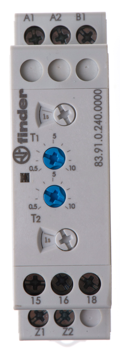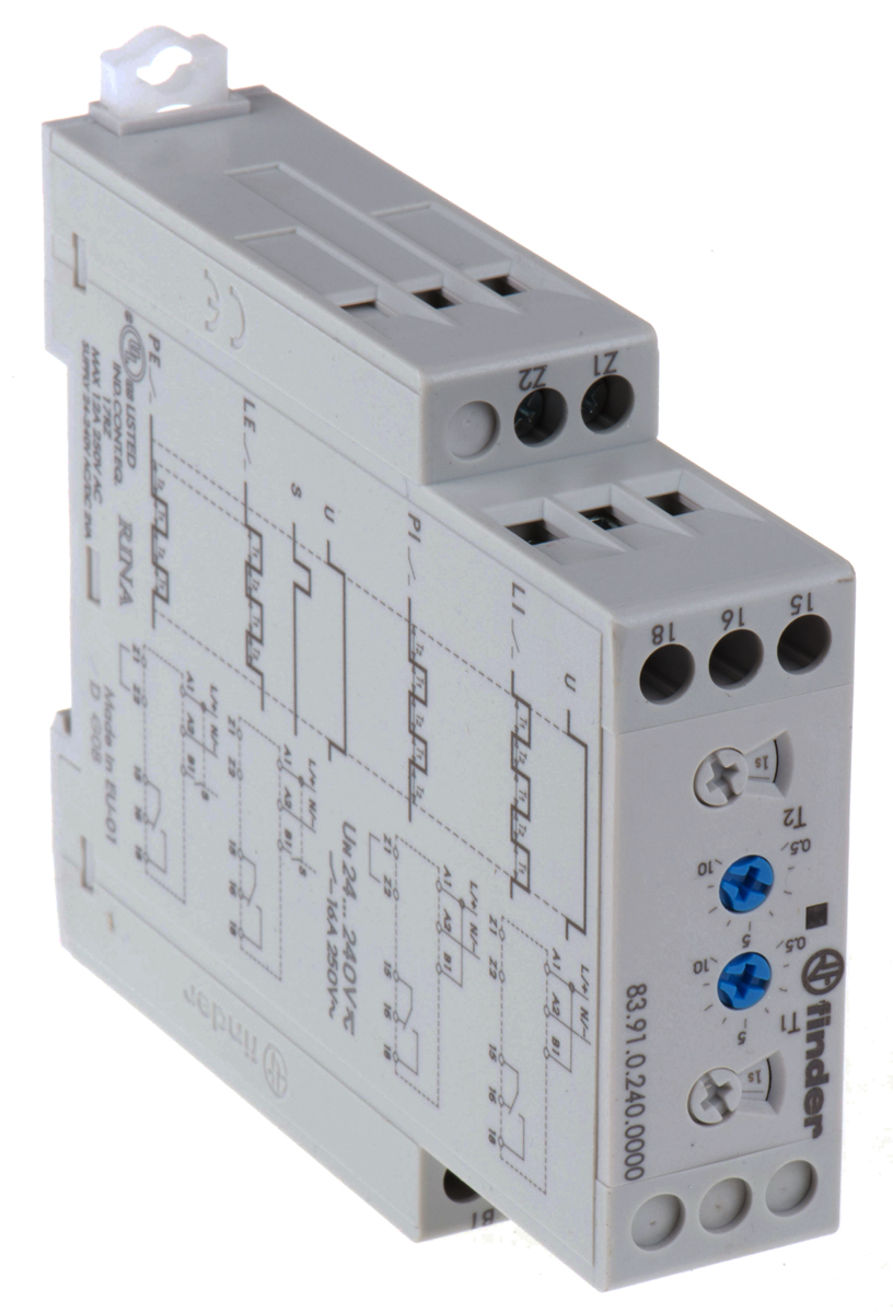 This is Single Timer Relay 0.05-10 d 0.05-10 h 0.05-10 min 0.05-10 s SPDT 1 Contacts SPDT 24 → 240 V ac/dc manufactured by Finder. The manufacturer part number is 83.91.0.240.0000. It has a maximum 265v ac/dc voltage . Furthermore, the product is 22.5mm wide. Features 24 → 240v ac/dc supply voltage. It also carries 16a maximum current. It has a standard 0.05-10 h, 0.05-10 min, 0.05-10 d, 0.05-10s time range . Its mode of operation is asymmetrical recycler with pulse start . It includes a single functions timer . It has a maximum operating temperature of +60°c. The terminal is a screw type. Additionally, its time delay is about 200ms . Its time increment is in days, hours, minutes, seconds . It includes a/an external power supply . It is created with a/an spdt switch configuration . The contact is equipped with spdt configuration. Its accurate length is 86.2mm. It has a minimum 16.8v ac/dc voltage . The product is available in din rail configuration. The product 83 series, is a highly preferred choice for users. The product comes in 100.3mm depth. It has a minimum 16a current . Whereas, the minimum operating temperature of the product is -20°c. The product contains 1 contacts. The product is made from sturdy silver alloy materials.