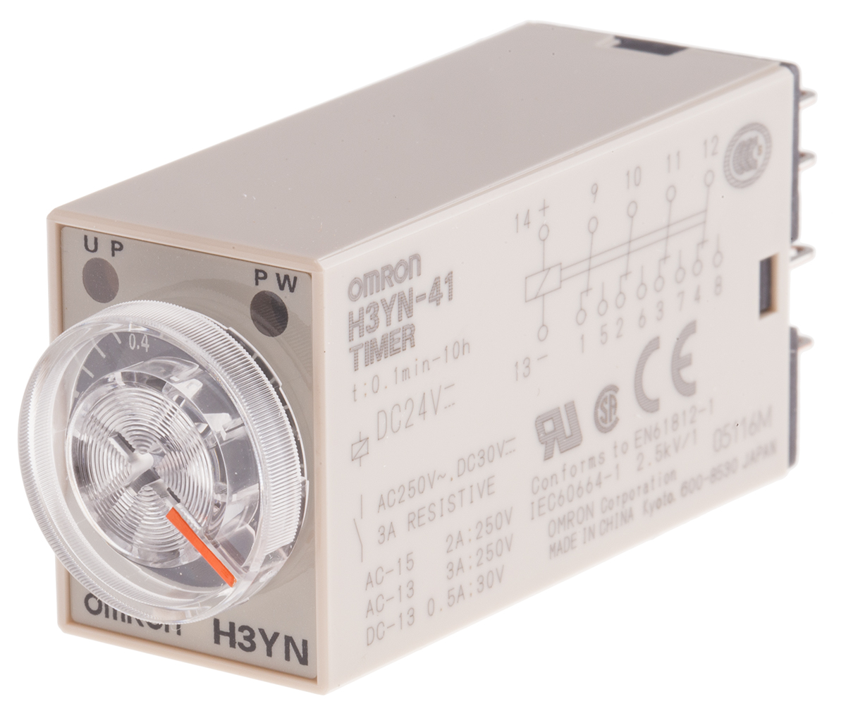 This is Multi Function Timer Relay Socket 0.1 min → 10 h 4 Contacts 4PDT 24 V dc manufactured by Omron. The manufacturer part number is H3YN-41 DC24. It has a maximum 250v ac voltage . Furthermore, the product is 21.5mm wide. Features 24v dc supply voltage. It also carries 3a maximum current. It has a standard 0.1 min → 10h time range . Its mode of operation is flicker off start, flicker on start, interval, on delay . It includes a multi function functions timer . It has a maximum operating temperature of +50°c. The terminal is a socket type. Additionally, its time delay is about 0.1s . Whereas, the minimum operating temperature of the product is -10°c. Its time increment is in hours, minutes . It includes a/an external power supply . It is created with a/an 4pdt switch configuration . Its accurate length is 28mm. It has a minimum 100v ac voltage . The product is available in din rail, panel mount configuration. The product h3yn, is a highly preferred choice for users. The product comes in 63mm depth. It has a minimum 3a current . The product contains 4 contacts. The product is made from sturdy gold plated materials.