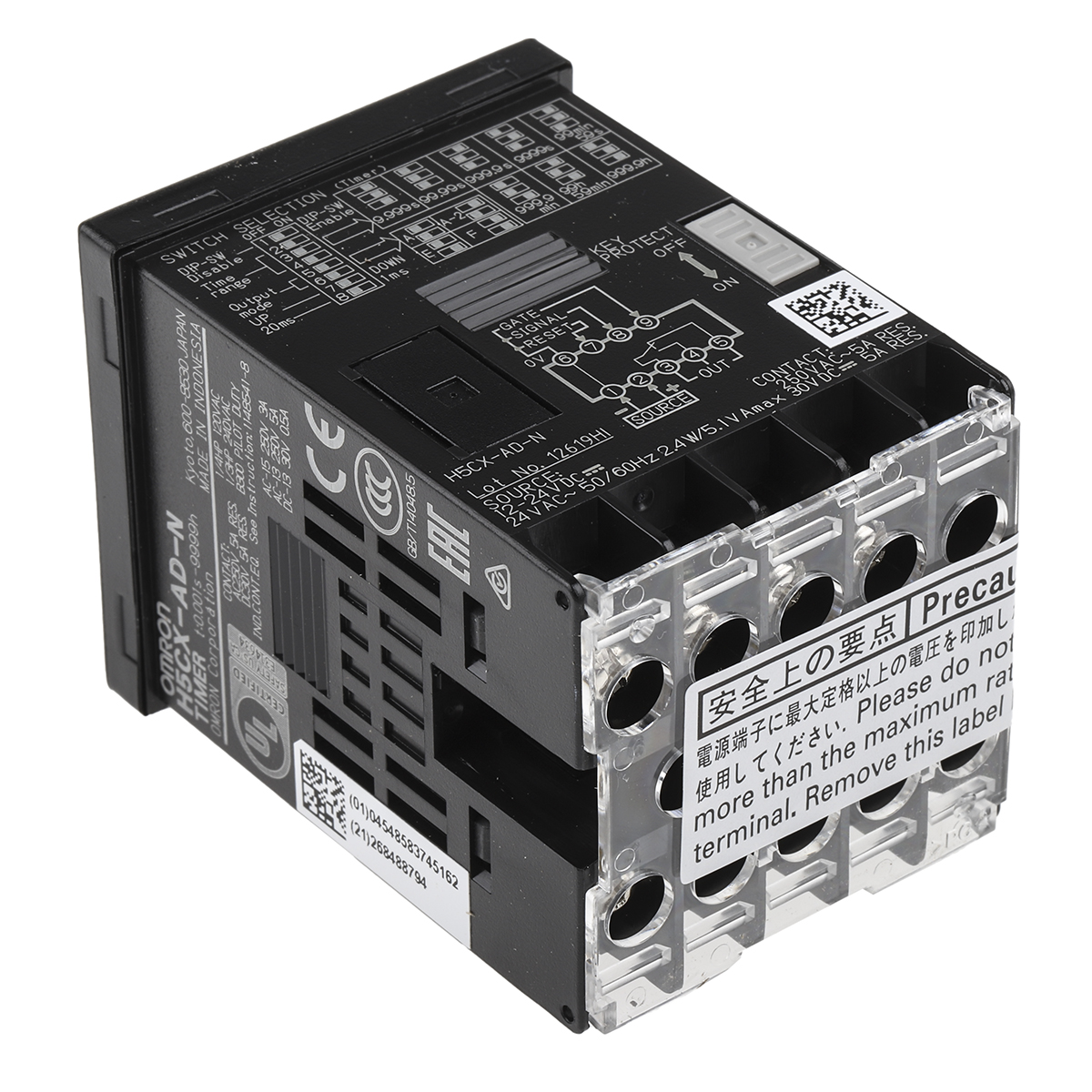 This is Multi Function Timer Relay Screw 0.001 s → 9999 h 1 Contacts SPDT 12 → 24 V ac/dc manufactured by Omron. The manufacturer part number is H5CX-AD-N. It is created with a/an spdt switch configuration . Its time increment is in hours, seconds . The product is available in panel mount configuration. It also carries 0.005a maximum current. The product h5cx, is a highly preferred choice for users. It has a standard 0.001 s → 9999h time range . It has a maximum 24v dc voltage . It includes a/an external power supply . Its accurate length is 48mm. Its mode of operation is cumulative, interval, on/off duty adjustable flicker, power on delay, repeat cycle, signal off delay, signal on delay, stopwatch . Furthermore, the product is 48mm wide. The product comes in 63.7mm depth. Features 12 → 24v ac/dc supply voltage. It includes a multi function functions timer . It has a minimum 12v dc voltage . The product contains 1 contacts. It has a maximum operating temperature of +55°c. The terminal is a screw type.