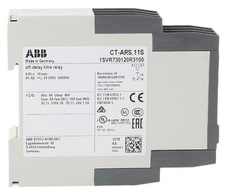 This is Single Timer Relay Screw 0.05 s → 10 min SPDT 1 Contacts SPDT 24 → 240 V ac/dc manufactured by ABB. The manufacturer part number is 1SVR730120R3100. It has a maximum 4 a current . Additionally, its time delay is about <50 (recovery) ms . Its time increment is in minutes, seconds . The product is available in din rail configuration. It has a maximum 300 v ac voltage . It has a standard 0.05 s → 10 min time range . It includes a/an external power supply . Its accurate length is 85.6mm. Its mode of operation is off delay without auxiliary voltage . The contact is equipped with spdt configuration. Furthermore, the product is 22.5mm wide. The product comes in 113.4mm depth. Features 24 → 240 v ac/dc supply voltage. It includes a single functions timer . It has a minimum 12 v voltage . The product contains 1 contacts. It is created with a/an spdt switch configuration . The terminal is a screw type. The product is made from sturdy cadmium free materials.