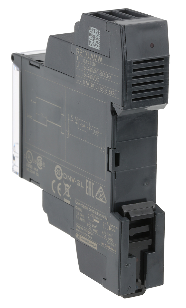 The Schneider Electric RE17LAMW delivers flexible and precise timing control tailored to the needs of UK industrial and automation systems. Compact and DIN‑rail mountable at just 17.5 mm wide, this on‑delay timer supports a broad range from 0.1 seconds up to 100 hours, and is compatible with 24–240 V AC/DC power supply, making it highly versatile. It offers dependable switching for control panels and machinery. Its ultra‑narrow width simplifies cabinet layout, matching single‑pole breaker form factors for easy integration. Additionally, its solid‑state reliability and repeat accuracy of ±0.5 % ensure consistent, maintenance‑free operation even under varying environmental conditions.