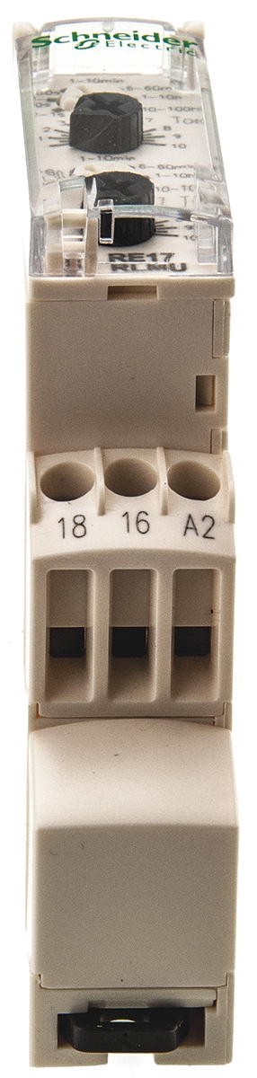 The Schneider Electric RE17RLMU is a high-precision, multifunction timing relay belonging to the Harmony RE17 series, designed to provide flexible control for automated systems. This dual-function device features an asymmetrical flashing capability with two independently adjustable timing periods, ranging from 0.1 seconds to 100 hours. Its slim 17.5mm profile ensures it occupies minimal space on a DIN rail. The wide supply voltage compatibility (24V to 240V AC/DC) makes it a versatile solution for various global industrial standards.