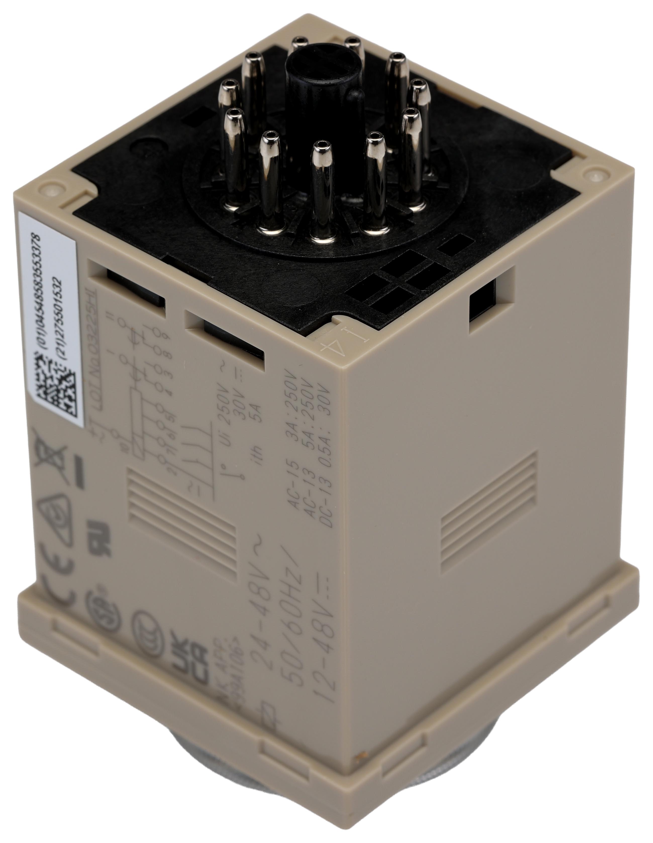 This is Timer Relay manufactured by Omron. The manufacturer part number is H3CR-A-301 AC24-48/DC12-48. It has a maximum 48v ac/dc voltage . Furthermore, the product is 48 mm wide. Features 12 → 48 v dc, 24 → 48v ac supply voltage. It also carries 5a maximum current. It has a standard 0.1 s → 600h time range . Its mode of operation is on delay . It includes a multi function functions timer . It has a maximum operating temperature of +55°c. The terminal is a plug in type. Its time increment is in hours, minutes, seconds . It includes a/an internal power supply . It is created with a/an dpdt switch configuration . The contact is equipped with dpdt configuration. Its accurate length is 48 mm. It has a minimum 12 v dc, 24v ac voltage . The product is available in din rail configuration. The product h3cr, is a highly preferred choice for users. The product comes in 81.6 mm depth. It has a minimum 10ma current . Whereas, the minimum operating temperature of the product is -10°c. The product contains 2 contacts. The product is made from sturdy ag alloy materials.