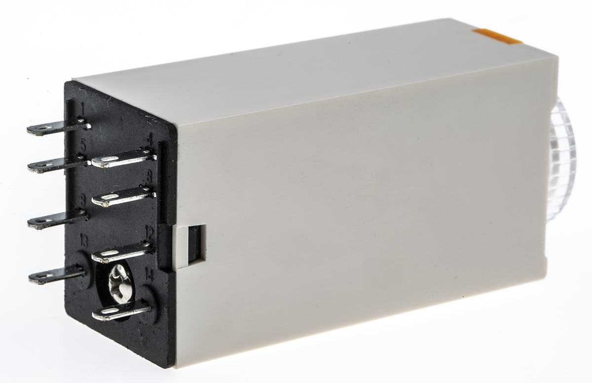 This is Analogue Time Relay. 8 pin DPCO manufactured by RS PRO. The manufacturer part number is 179-2939. Additionally, its time delay is about 0.2s . Its time increment is in seconds . The product is available in plug in configuration. It also carries 5a maximum current. It has a standard 0.5 → 10s time range . It has a maximum 110v ac voltage . Its accurate length is 53mm. Its mode of operation is on delay . The contact is equipped with dpdt configuration. Furthermore, the product is 21.5mm wide. The product comes in 2.8mm depth. Features 110v ac supply voltage. It includes a single functions timer . It is created with a/an dpdt switch configuration . The product contains 2 contacts. The terminal is a 8-pin connector type.