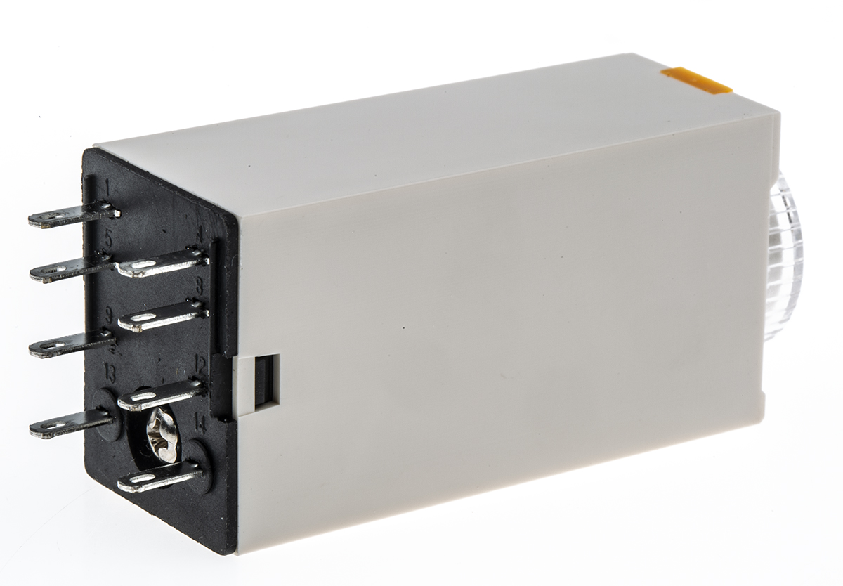 This is Analogue Time Relay. 8 pin DPCO manufactured by RS PRO. The manufacturer part number is 179-2948. Additionally, its time delay is about 0.2s . Its time increment is in seconds . The product is available in plug in configuration. It also carries 5a maximum current. It has a standard 0.2 → 5s time range . It has a maximum 24v dc voltage . Its accurate length is 53mm. Its mode of operation is on delay . The contact is equipped with dpdt configuration. Furthermore, the product is 21.5mm wide. The product comes in 2.8mm depth. Features 24v dc supply voltage. Whereas, the minimum operating temperature of the product is -10°c. It includes a single functions timer . It is created with a/an dpdt switch configuration . The product contains 2 contacts. It has a maximum operating temperature of +55°c. The terminal is a 8-pin connector type.