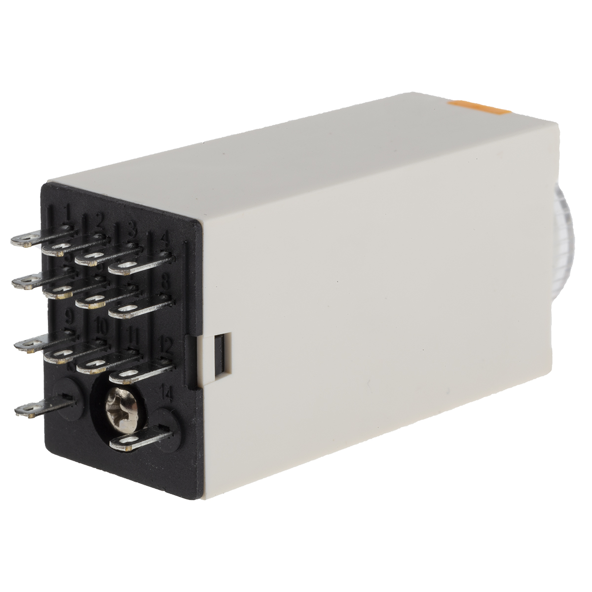 This is Analogue Time Relay. 14 pin 4PCO manufactured by RS PRO. The manufacturer part number is 179-2985. Additionally, its time delay is about 0.2s . Its time increment is in minutes . The product is available in plug in configuration. It also carries 3a maximum current. It has a standard 0.5 → 10min time range . It has a maximum 24v dc voltage . Its accurate length is 53mm. Its mode of operation is on delay . The contact is equipped with 4pdt configuration. Furthermore, the product is 21.5mm wide. The product comes in 2.8mm depth. Features 24v dc supply voltage. Whereas, the minimum operating temperature of the product is -10°c. It includes a single functions timer . It is created with a/an 4pdt switch configuration . The product contains 4 contacts. It has a maximum operating temperature of +55°c. The terminal is a 14-pin connector type.