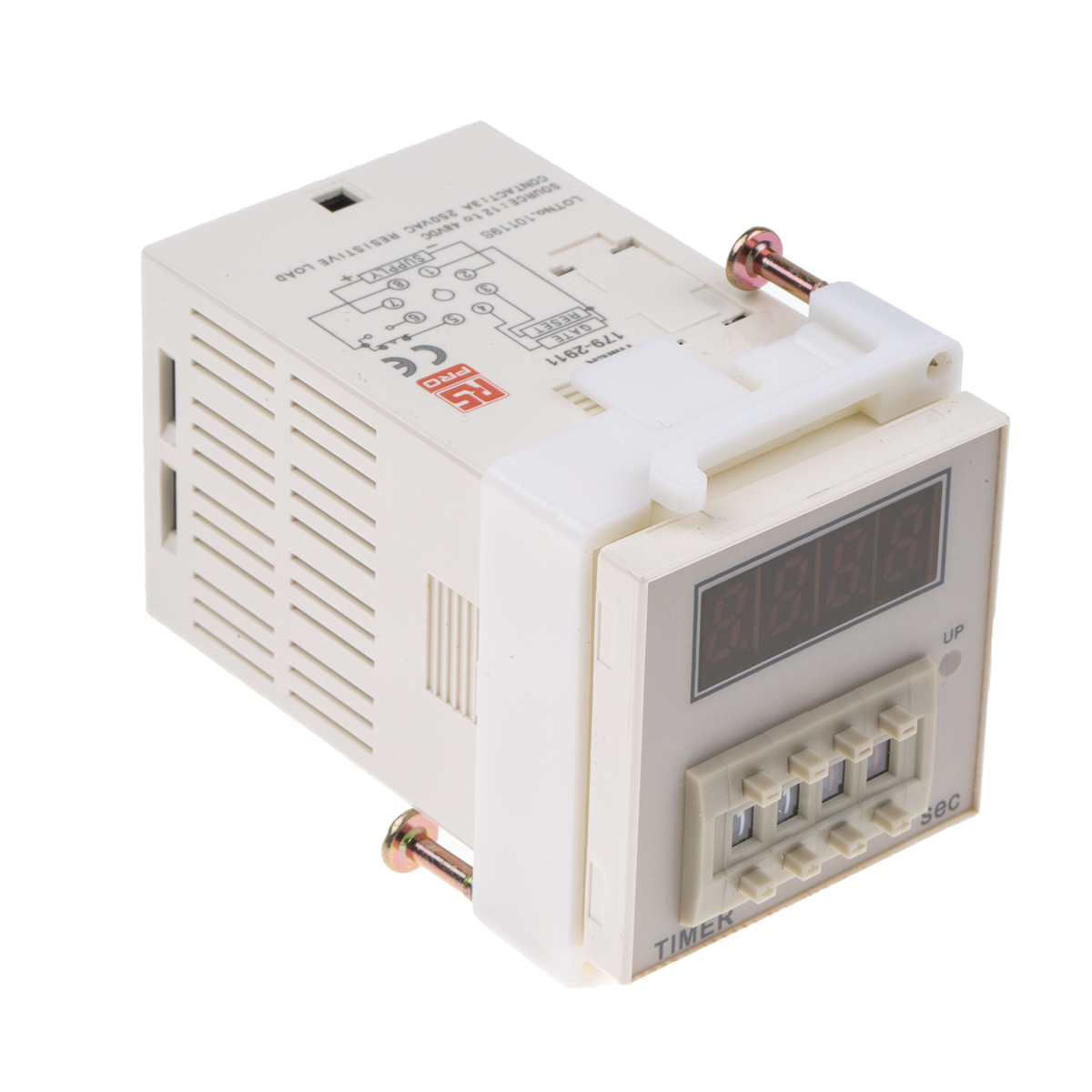 This is TCN. Digital Time Relay. Thumbwheel cont manufactured by RS PRO. The manufacturer part number is 179-2911. It is created with a/an spdt switch configuration . The product is available in plug in configuration. It has a maximum 48v dc voltage . It has a standard 99.99s time range . It includes a/an external power supply . Its mode of operation is on-delay . The contact is equipped with spdt configuration. Features 12 → 48v dc supply voltage. It includes a single functions timer . It has a minimum 12v dc voltage . The product contains 1 contacts.