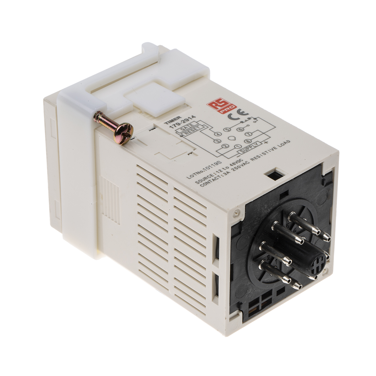 This is TCN. Digital Time Relay. Thumbwheel cont manufactured by RS PRO. The manufacturer part number is 179-2914. It is created with a/an spdt switch configuration . The product is available in plug in configuration. It has a maximum 48v dc voltage . It has a standard 99 h 59min time range . It includes a/an external power supply . Its mode of operation is on-delay . The contact is equipped with spdt configuration. Features 12 → 48v dc supply voltage. It includes a single functions timer . It has a minimum 12v dc voltage . The product contains 1 contacts.