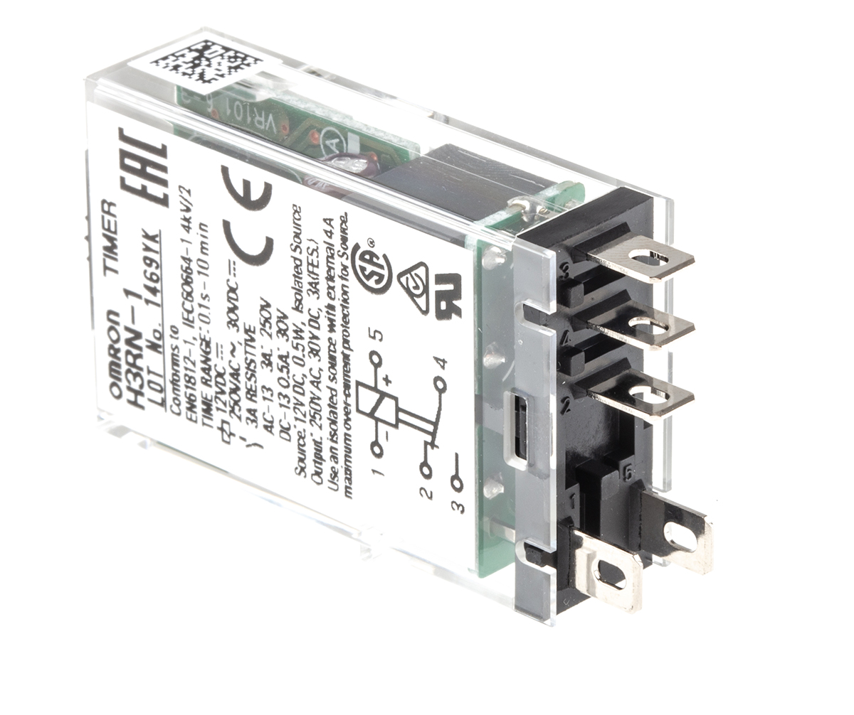 This is Multi Function Timer Relay 0.1 s → 10 min 1 Contacts 12 V dc - SPDT Switch Configuration manufactured by Omron. The manufacturer part number is H3RN-1 DC12. Additionally, its time delay is about (dc) 0.1 s, (ac) 0.5s . Its time increment is in minutes, seconds . The product is available in plug in configuration. It also carries 3a maximum current. Whereas, the minimum operating temperature of the product is -10°c. The product h3rn, is a highly preferred choice for users. It has a standard 0.1 s → 10min time range . It has a maximum 250v ac voltage . It includes a/an external power supply . Its accurate length is 31.2mm. Its mode of operation is flicker off start, flicker on start selectable by dip switch, interval, on delay . Furthermore, the product is 22.5mm wide. The product comes in 53.4mm depth. Features 12v dc supply voltage. It includes a multi function functions timer . It is created with a/an spdt switch configuration . The product contains 1 contacts. It has a maximum operating temperature of +55°c. The terminal is a socket type.