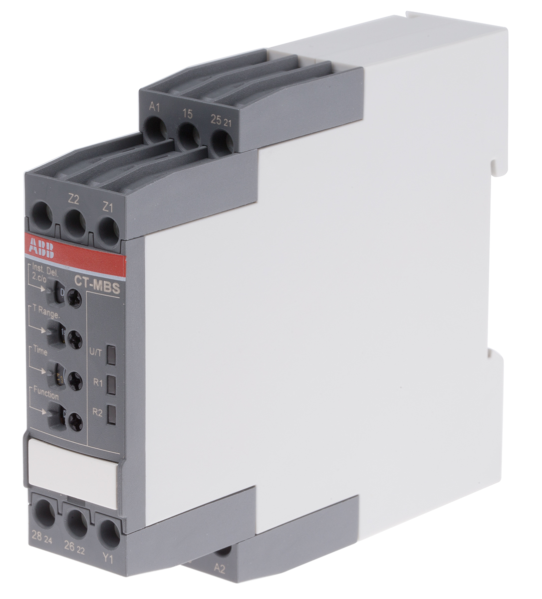 This is DPDT Multi Function Timer Relay 24 → 240 V ac 24 → 48V dc 0.05 s → 300h DIN Rail Mount manufactured by ABB. The manufacturer part number is 1SVR740010R3200 CT-MBS.22P. Additionally, its time delay is about (recovery) <80ms . Its time increment is in hours, seconds . The product is available in din rail configuration. It also carries 4a maximum current. It has a standard 0.05 s → 300h time range . It has a maximum 300v ac voltage . It includes a/an external power supply . Its accurate length is 85.6mm. Its mode of operation is flash start with off, flash start with on, impulse off with auxiliary voltage, impulse on, off delay with auxiliary voltage, on delay, pulse former, star delta changeover with impulse, symmetrical off delay, symmetrical on delay . The contact is equipped with dpdt configuration. Furthermore, the product is 22.5mm wide. The product comes in 113.4mm depth. It has a minimum 10ma current . Features 24 → 240 v ac, 24 → 48v dc supply voltage. It includes a multi function functions timer . It has a minimum 12v voltage . The product contains 2 contacts. It is created with a/an spdt switch configuration . The terminal is a push in type. The product is made from sturdy cadmium free materials.