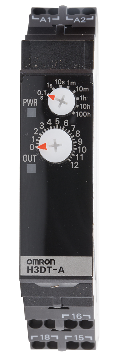 This is H3DT Series DIN Rail Mount Timer Relay 24 → 240V ac/dc 2-Contact 0.1 s → 1200 h 1-Function SPDT manufactured by Omron. The manufacturer part number is H3DT-A1 24-240VAC/DC. It has a maximum 240v voltage . Furthermore, the product is 90mm wide. Features 24 → 240v ac/dc supply voltage. It also carries 5a maximum current. It has a standard 0.1 s → 1200 h time range . Its mode of operation is on delay . It includes a single functions timer . It has a maximum operating temperature of +60°c. The terminal is a push in type. Its time increment is in hours, minutes, seconds . It includes a/an external power supply . It is created with a/an spdt switch configuration . The contact is equipped with spdt configuration. Its accurate length is 17.5mm. It has a minimum 24v voltage . The product is available in din rail configuration. The product h3dt, is a highly preferred choice for users. The product comes in 100mm depth. Whereas, the minimum operating temperature of the product is -20°c. The product contains 2 contacts. The product is made from sturdy silver alloy materials.