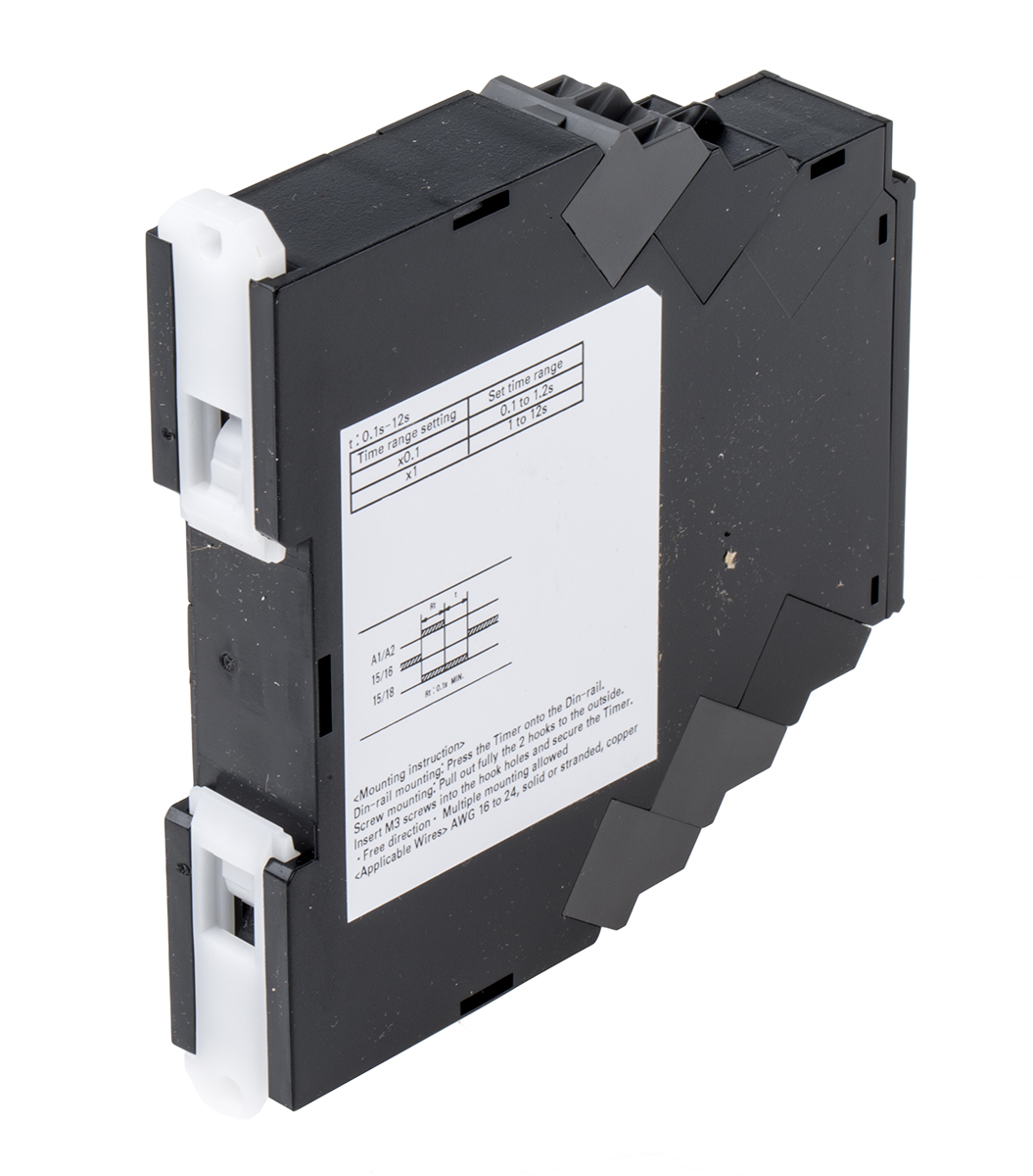This is H3DT Series DIN Rail Mount Timer Relay 24 → 48V ac/dc 2-Contact 1 → 120s 1-Function SPDT manufactured by Omron. The manufacturer part number is H3DT-HBS 24-48VAC/DC. It is created with a/an spdt switch configuration . Its time increment is in seconds . The product is available in din rail configuration. It also carries 5a maximum current. The product h3dt, is a highly preferred choice for users. It has a standard 1 → 120s time range . It has a maximum 30 v dc, 250v ac voltage . It includes a/an external power supply . Its accurate length is 17.5mm. Its mode of operation is power off delay . The contact is equipped with spdt configuration. Furthermore, the product is 90mm wide. The product comes in 100mm depth. Features 24 → 48v ac/dc supply voltage. Whereas, the minimum operating temperature of the product is -20°c. It includes a single functions timer . The product contains 2 contacts. It has a maximum operating temperature of +60°c. The terminal is a screw type. The product is made from sturdy silver alloy materials.