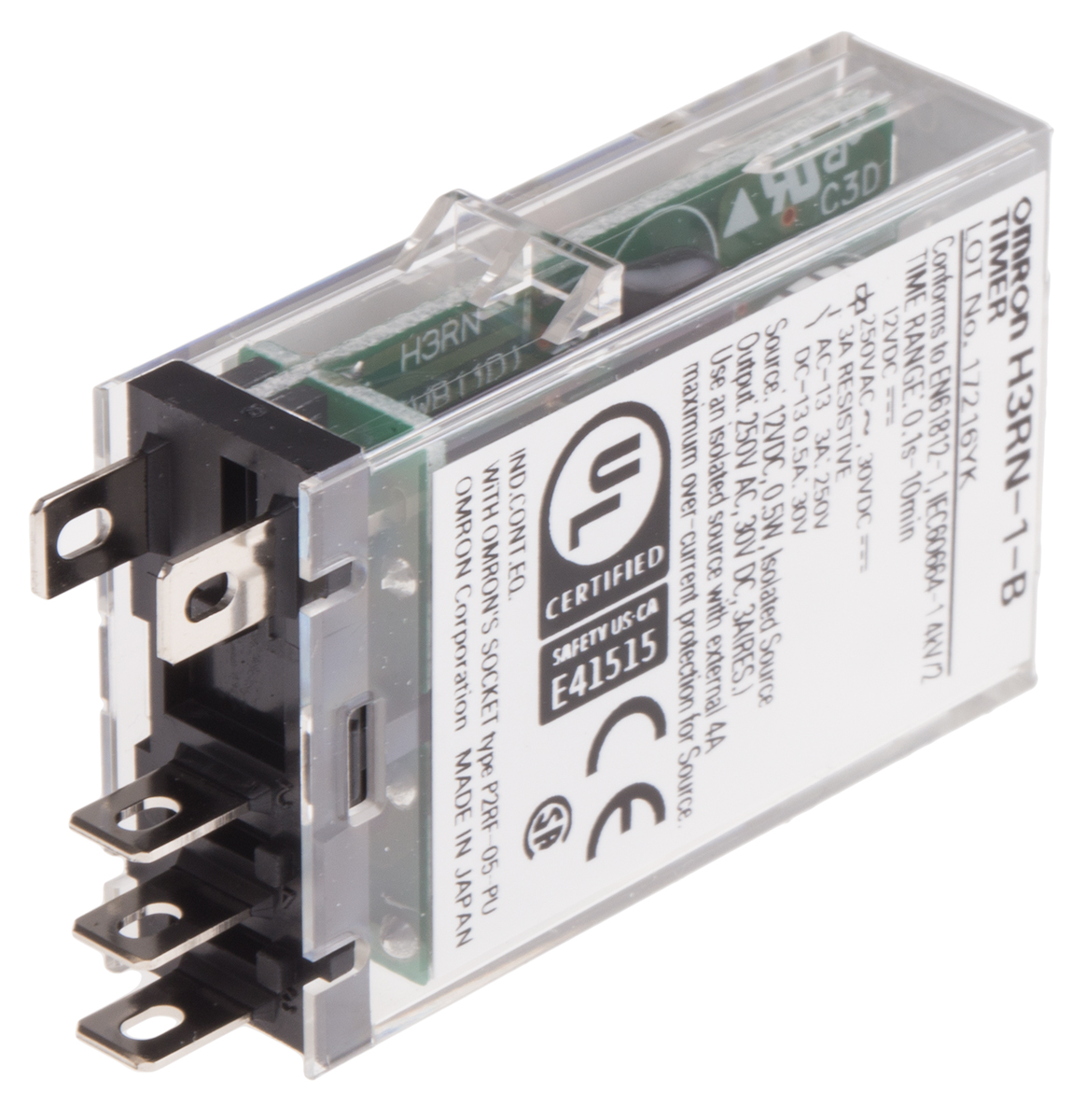 This is H3RN Series Panel Mount Timer Relay 12V dc 2-Contact 0.1 s → 10min SPDT manufactured by Omron. The manufacturer part number is H3RN-1-B 12VDC. It is created with a/an spdt switch configuration . Its time increment is in minutes, seconds . The product is available in panel mount configuration. It also carries 3a maximum current. The product h3rn, is a highly preferred choice for users. It has a standard 0.1 s → 10min time range . It has a maximum 250v ac voltage . It includes a/an external power supply . Its accurate length is 12.8mm. Its mode of operation is delay on, flicker off start, flicker on start, interval . The contact is equipped with spdt configuration. Furthermore, the product is 47.2mm wide. The product comes in 31.2mm depth. Features 12v dc supply voltage. Whereas, the minimum operating temperature of the product is -10°c. It includes a multi function functions timer . The product contains 2 contacts. It has a maximum operating temperature of +55°c. The terminal is a plug in type.