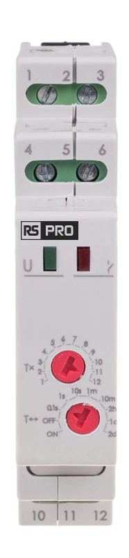 This is DIN Rail Mount Timer Relay 195 → 253V ac 1-Contact 0.1 s → 576h 1-Function SPDT manufactured by RS PRO. The manufacturer part number is 323-896. The product is available in din rail configuration. It has a standard 0.1 s → 576h time range . It includes a/an external, internal, universal power supply . Its mode of operation is lagged deactivation . The contact is equipped with 2no/1nc configuration. Features 195 → 253v ac supply voltage. It includes a 1 functions timer . The product contains 1 contacts. The terminal is a screw type. The product is made from sturdy ag cuni, cd materials.