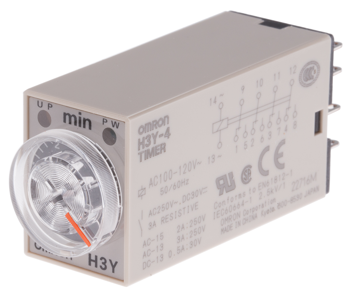 This is H3Y-4 Series DIN Rail Surface Mount Timer Relay 100 → 120V ac 4-Contact 0.2 → 5min 1-Function manufactured by Omron. The manufacturer part number is H3Y-4 100-120VAC 5M. Additionally, its time delay is about 0.1s . Its time increment is in minutes . The product is available in din rail, surface mount configuration. It also carries 5a maximum current. Whereas, the minimum operating temperature of the product is -10°c. The product h3y-4, is a highly preferred choice for users. It has a standard 0.2 → 5min time range . It has a maximum 250v ac voltage . It includes a/an external power supply . Its accurate length is 28mm. Its mode of operation is on delay . The contact is equipped with 4pdt configuration. Furthermore, the product is 21.5mm wide. The product comes in 63mm depth. Features 100 → 120v ac supply voltage. It includes a single functions timer . It is created with a/an 4pdt switch configuration . The product contains 4 contacts. It has a maximum operating temperature of +50°c. The terminal is a plug in type.