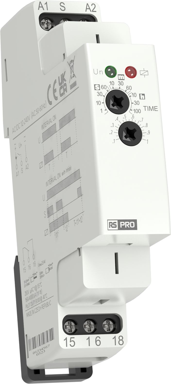 This is DIN Rail Mount Timer Relay 12 → 240V ac/dc 1-Contact 0.1 s → 100h 1-Function SPDT manufactured by RS PRO. The manufacturer part number is 360-698. The product is available in din rail mount configuration. It has a maximum 240v ac/dc voltage . It has a standard 0.1 s → 100h time range . It includes a/an universal power supply . Its accurate length is 90mm. Its mode of operation is off delay, on delay . The contact is equipped with spdt configuration. Furthermore, the product is 17.6mm wide. The product comes in 64mm depth. Features 12 → 240v ac/dc supply voltage. Whereas, the minimum operating temperature of the product is -20°c. It includes a 1 functions timer . It has a minimum 12v ac/dc voltage . The product contains 1 contacts. It has a maximum operating temperature of 55°c.