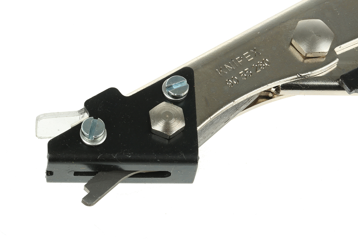 This is 280 mm Nibbler manufactured by Knipex. The manufacturer part number is 90 55 280. It has straight type of cut . Its typical cutting capacity is 1,2 mm . In addition, it has soft iron; aluminium; copper; brass cut material . It has an overall length of 280 mm. In addition, it has a polished blade finish .