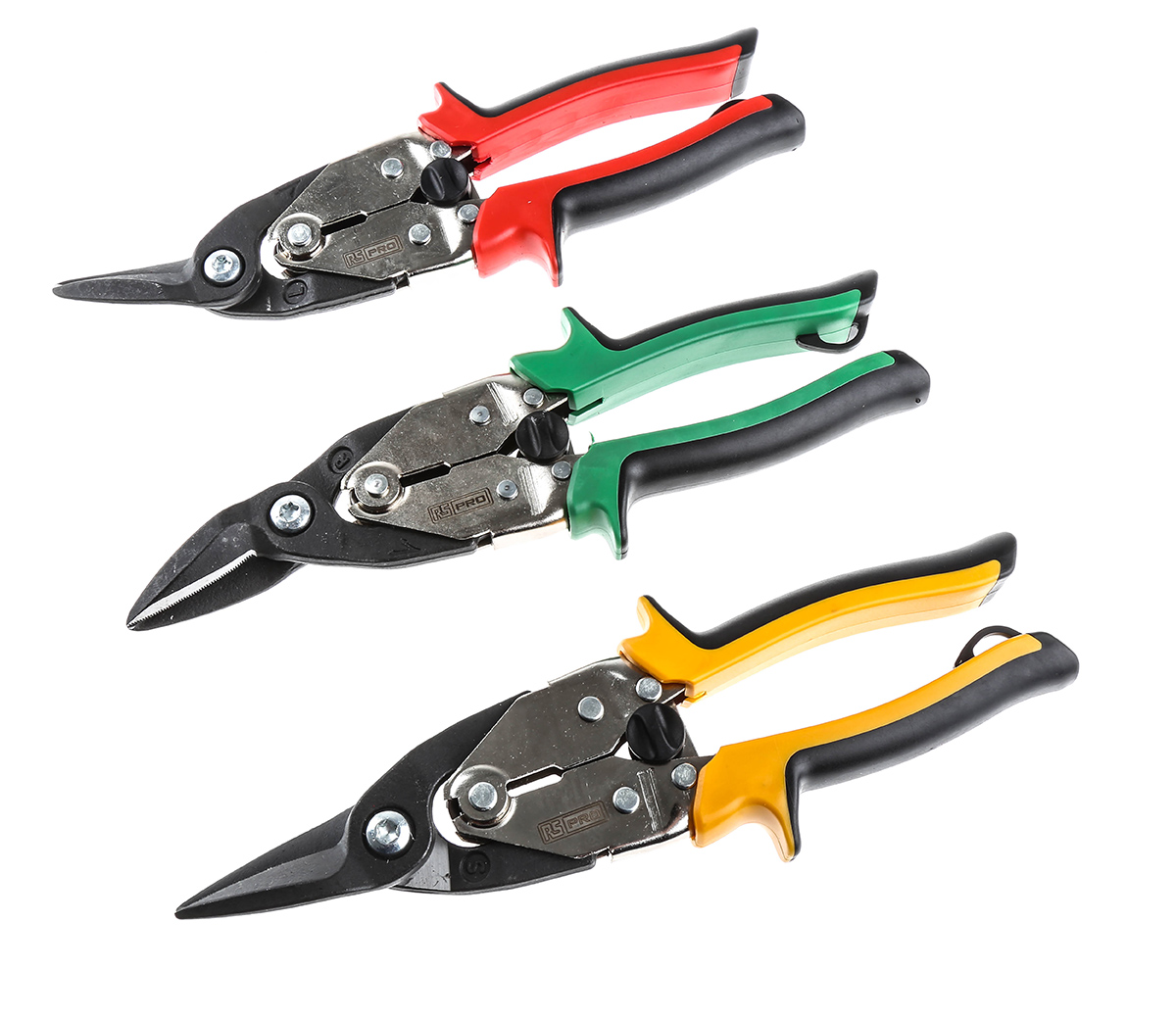 This is 250 mm Left Right Straight Snips manufactured by RS PRO. The manufacturer part number is 182-9988. It has left, right, straight type of cut . It has an overall length of 250 mm.
