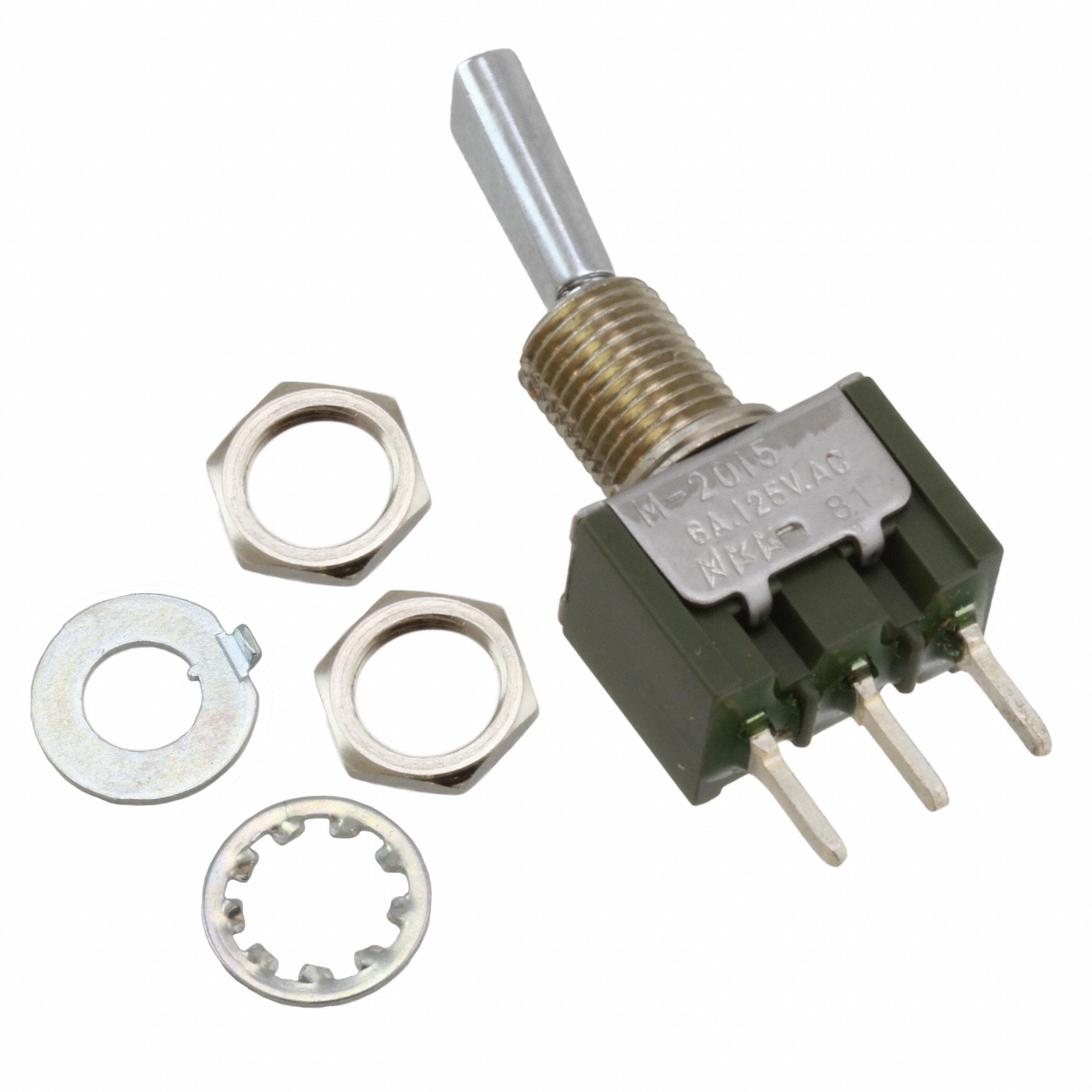 This is manufactured by NKK Switches. The manufacturer part number is M2015ES1W03. It is assigned with possible HTSUS value of 8536.50.9065. The product is rohs3 compliant. The product offers long-lasting services of 25,000 cycles. Moreover, it has pc pin terminal style. 30 v of DC voltage rating. The product has -30°c ~ 85°c operating temperature range. It also has a circular - 6.50mm dia dimensional features. The actuator is a 11.40mm long. The product exhibits 125 v of AC voltage rating. In addition, it is reach unaffected. It is shipped in bulk package . It is designed as a on-mom switching function. Its typical moisture sensitivity level is 1 (unlimited). It has an integral spdt circuit. Additionally, the product's output is 6a (ac), 3a (dc). The splendid features of the product include epoxy sealed terminals. The product is available in panel mount configuration. The product m, is a highly preferred choice for users. The product has bushing thread of 1/4-40. The product carries flatted actuator. Is this product illuminated? non-illuminated. The actuator is designed from sturdy brass, chrome plated material. Moreover, it corresponds to m2015es, a base product number of the product. The product is designated with the ear99 code number.