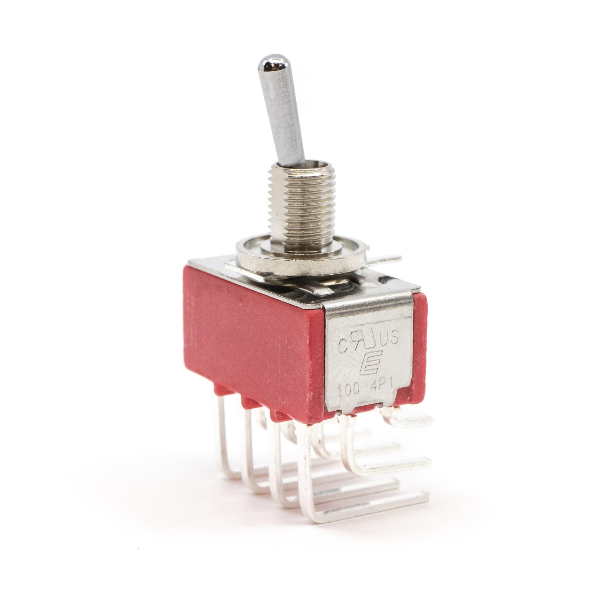 This is manufactured by E-Switch. The manufacturer part number is 1004P1T1B9M7QE. It is assigned with possible HTSUS value of 8536.50.9065. The product is rohs3 compliant. The product offers long-lasting services of 40,000 cycles. Moreover, it has pc pin terminal style. 28 v of DC voltage rating. The product has -30°c ~ 85°c operating temperature range. It also has a circular - 6.35mm dia dimensional features. The actuator is a 10.41mm long. The product exhibits 120 v of AC voltage rating. In addition, it is reach unaffected. It is designed as a on-on switching function. Its typical moisture sensitivity level is 1 (unlimited). It has an integral 4pdt circuit. It has a long 11 weeks standard lead time. Additionally, the product's output is 5a (ac/dc). The splendid features of the product include epoxy sealed terminals. The product is available in panel mount, right angle, vertical configuration. The product 100, is a highly preferred choice for users. In addition, bulk is the available packaging type of the product. The product has bushing thread of 1/4-40. The product carries standard round actuator. Is this product illuminated? non-illuminated. The actuator is designed from sturdy brass, chrome plated material. Moreover, it corresponds to 1004p1, a base product number of the product. The product is designated with the ear99 code number.