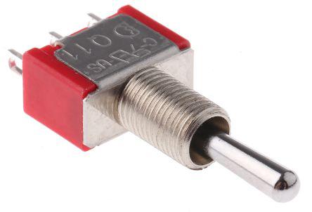 This is Toggle Switch SPDT (On)-Off-(On) 5 A @ 250 V ac Panel Mount manufactured by RS Pro. The manufacturer part number is 1MS4T1B1M1QNS-5. It features a 10mω contact resistance. The actuator is a 10.41mm long. The product complies with all safety standards, such as rohs & lead free. The product is available in panel mount configuration. The product has -30 → +85°c of operating temperature range. The rated contact current is 5 a @ 250 v ac. The panel has a 6.35mm cut-out diameter. The contact is equipped with spdt configuration. The panel cut out size includes 6.35mm. The actuator is designed from sturdy chromium plated brass material. Whereas, the minimum operating temperature of the product is -30°c. The product also provide mechanical stability with 40000cycles. It provides (on)-off-(on) switch operation. It has a maximum operating temperature of +85°c. The terminal is a solder type. The product is made from sturdy silver plated brass materials.