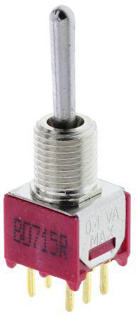 This is Toggle Switch DPDT On-Off-On 400 mA @ 20 V PCB manufactured by RS Pro. The manufacturer part number is 450-2831. It features a 20mω contact resistance. The actuator is a 10.41mm long. The product complies with all safety standards, such as ul listed. The product is available in pcb configuration. The product has -30 → +85°c of operating temperature range. The rated contact current is 400 ma @ 20 v. The contact is equipped with dpdt configuration. The actuator is designed from sturdy chrome plated brass material. Whereas, the minimum operating temperature of the product is -30°c. It provides on-off-on switch operation. It has a maximum operating temperature of +85°c. The terminal is a through hole type. The product is made from sturdy gold over nickel plated brass materials.