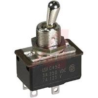 This is Switch Toggle AC-DC Rated 6A@125V; 3A@250V DP 2 POS. ON-OFF Solder TERM. manufactured by Eaton. The manufacturer part number is 8370K107.