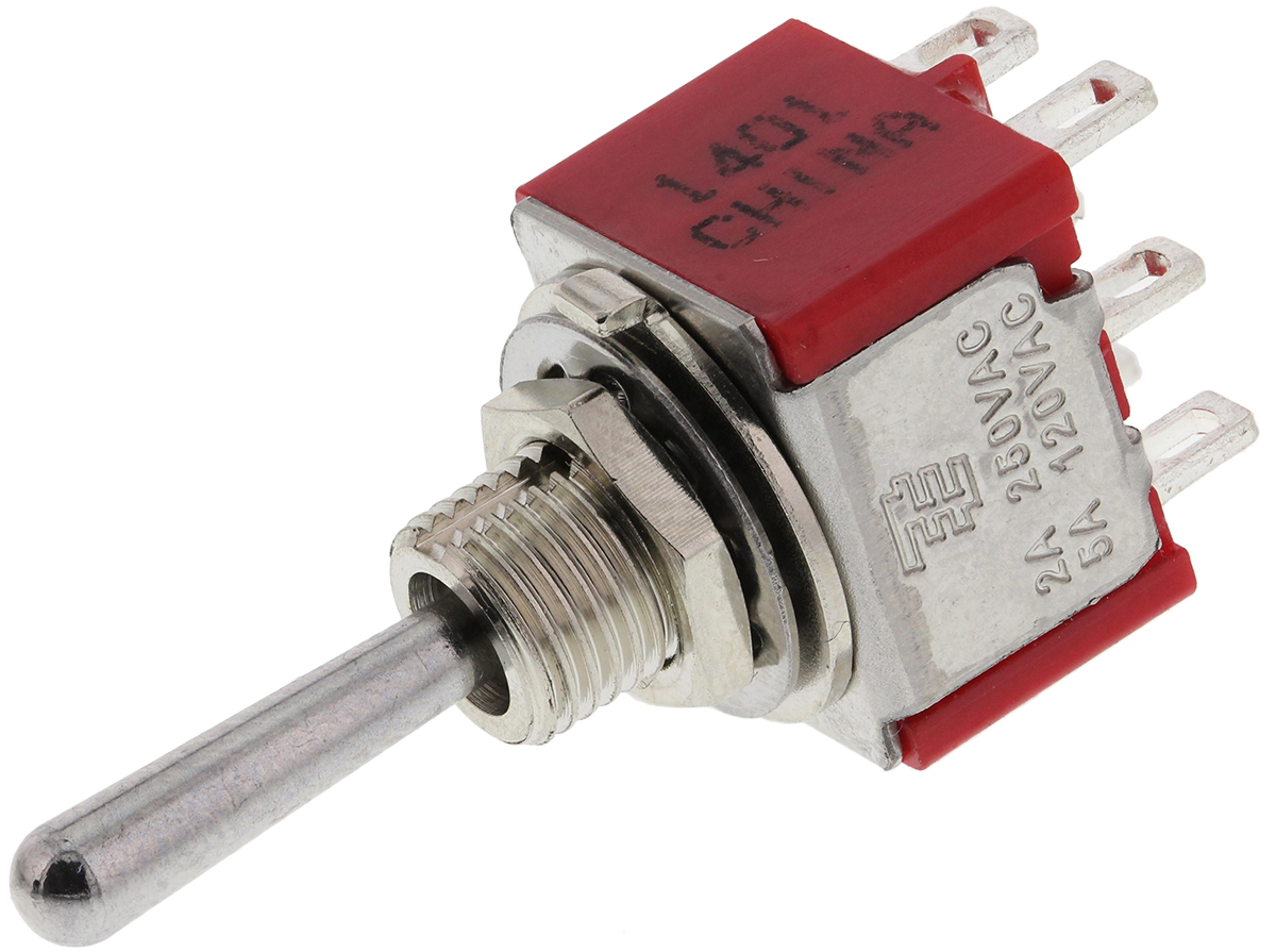 This is DPDT Toggle Switch On-On-On PCB manufactured by TE Connectivity. The manufacturer part number is 3-1825139-4. It features a 10mω contact resistance. The actuator is a 12.19mm long. The product is available in panel mount configuration. Moreover, the product has a nominal 120 v ac, 28v dc voltage rating. The rated contact current is 5 a @ 28 v dc. The panel has a 6.35mm cut-out diameter. The contact is equipped with dpdt configuration. The panel cut out size includes 6.35mm. The actuator is designed from sturdy phenolic material. Whereas, the minimum operating temperature of the product is -30°c. The product has -30 → +85°c of operating temperature range. It provides on-on-on switch operation. It has a maximum operating temperature of +85°c. The terminal is a solder type. The product is made from sturdy silver plated copper materials.