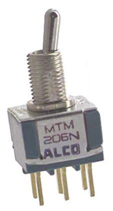This is DPDT Toggle Switch On-On Panel Mount manufactured by TE Connectivity. The manufacturer part number is MTM206NPC. It features a 1ω contact resistance. The product is available in panel mount configuration. The product has -20 → +80°c of operating temperature range. The rated contact current is 4 a @ 28 v dc. The panel has a 0.072in cut-out diameter. The contact is equipped with dpdt configuration. Whereas, the minimum operating temperature of the product is -20°c. The panel cut out size includes 0.072in. It has a maximum operating temperature of +80°c. The terminal is a solder type. It provides latching switch operation.