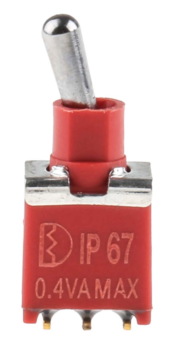 This is SPDT Toggle Switch On-On IP67 PCB manufactured by RS Pro. The manufacturer part number is 401-686. It features a 20mω contact resistance. The actuator is a 6.1mm long. The product complies with all safety standards, such as rohs & lead free. The product is available in pcb configuration. It is IP rated with ip67. The rated contact current is 400 ma @ 20 v dc. Whereas, the minimum operating temperature of the product is -30°c. The contact is equipped with spdt configuration. The actuator is designed from sturdy brass material. The product has -30 → +85°c of operating temperature range. The product also provide mechanical stability with 30000cycles. It provides on-on switch operation. It has a maximum operating temperature of +85°c. The terminal is a through hole type. The product is made from sturdy gold materials.